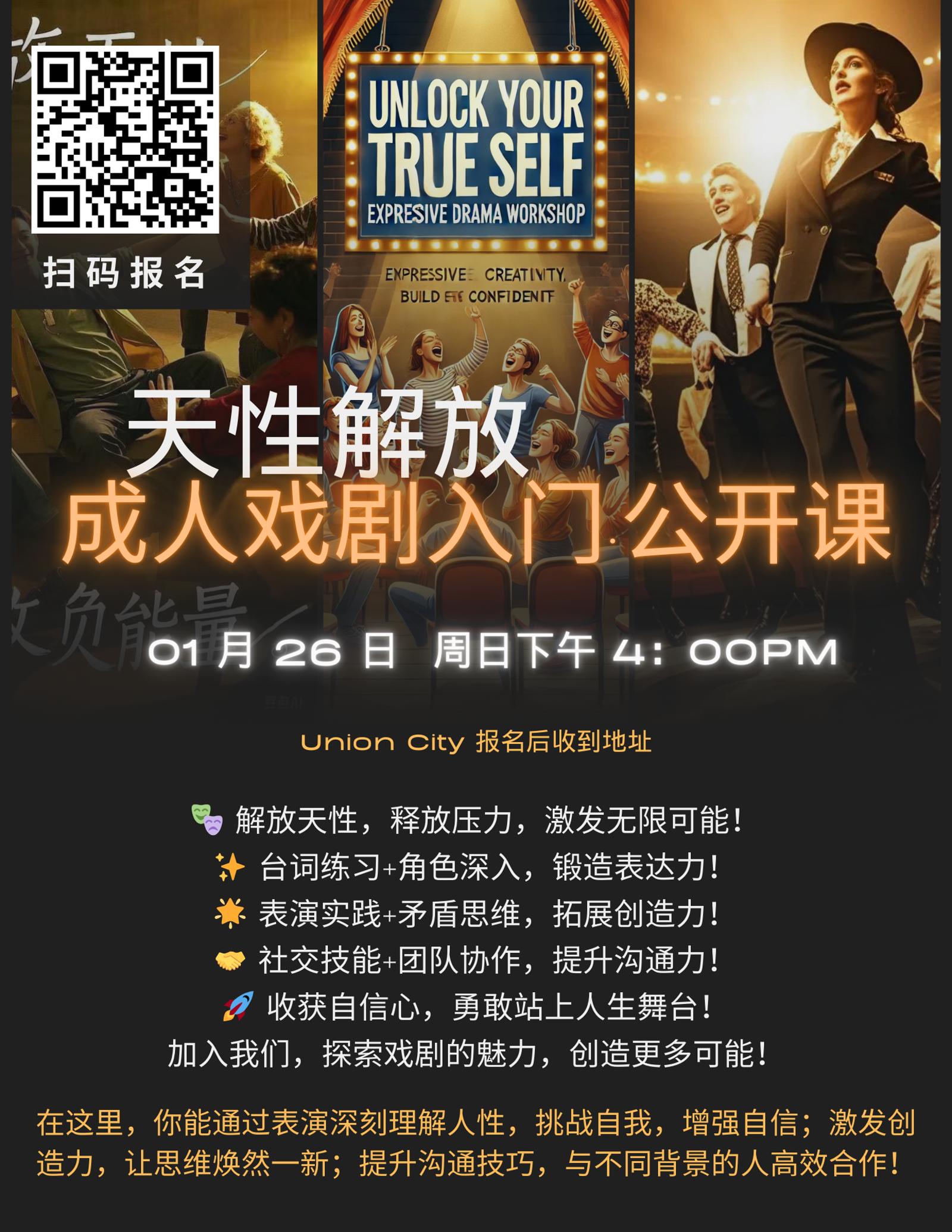 加入我们,探索戏剧的魅力,创造更多可能!释放压力,收获乐趣,戏剧让生活更精彩!