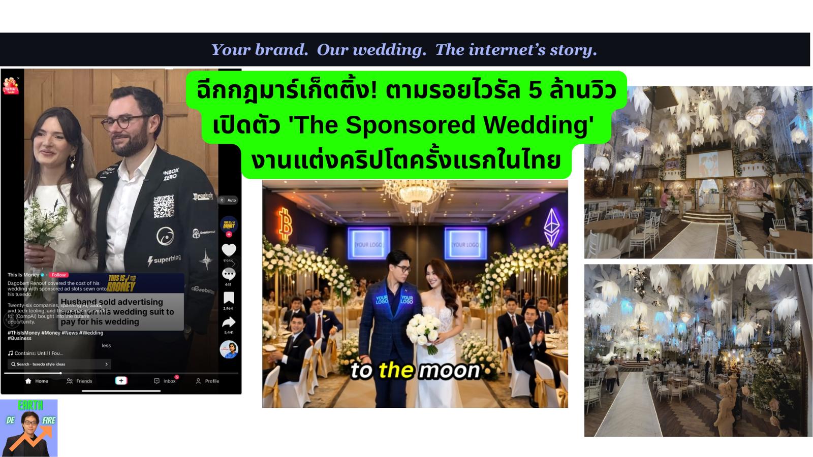นี่คืองานแต่งงานที่ถูกพูดถึงในหน้าข่าวสื่อธุรกิจและคริปโตมากที่สุด! โปรเจกต์นี้เป็นการต่อยอดความสำเร็จจากโมเดลระดับโลกที่เคยสร้างกระแสไวรัลกว่า 5 ล้านวิวมาแล้ว เราได้เปลี่ยนพื้นที่ในงานแต่งงานให้กลายเป็นพื้นที่ Viral Engagement ระดับโลก โดยได้รับการสนับสนุนจากโปรเจกต์ Crypto, บริษัท AI, แพลตฟอร์ม Web3 และสถาบันการเงินชั้นนำ