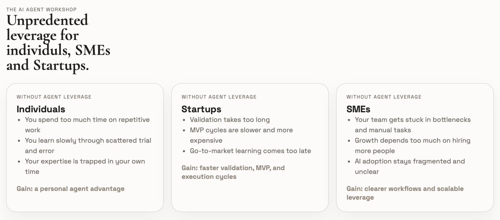 Hands-on AI Agent workshop for individuals, SMEs and Startups