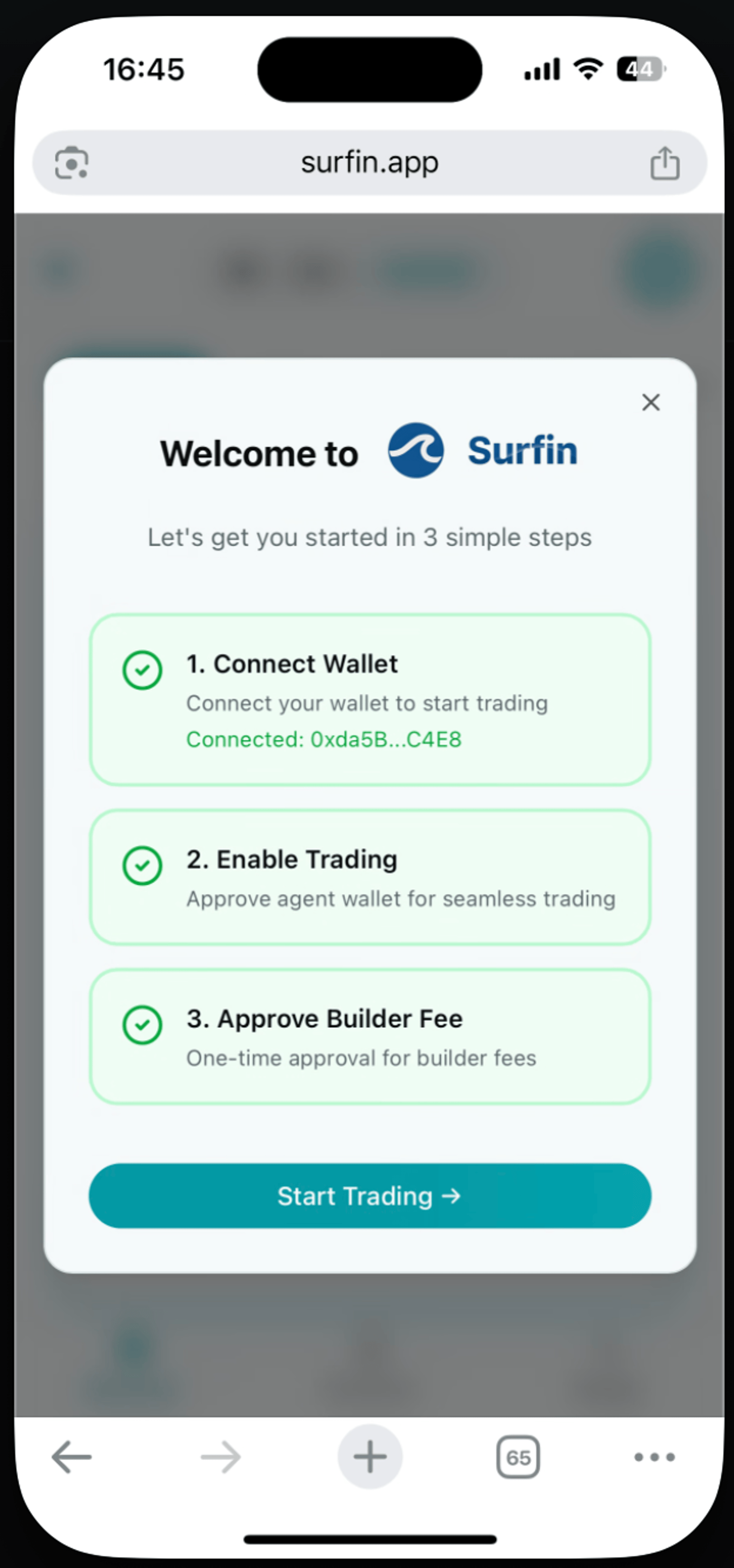 Surfin is the swipe-to-trade app on leading Perpetuals Platforms.
