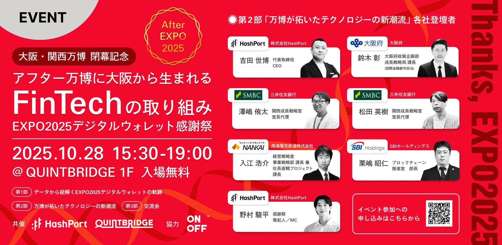【大阪・関西万博 閉幕記念】アフター万博に大阪から生まれるFinTechの取り組み〜EXPO2025デジタルウォレット感謝祭〜