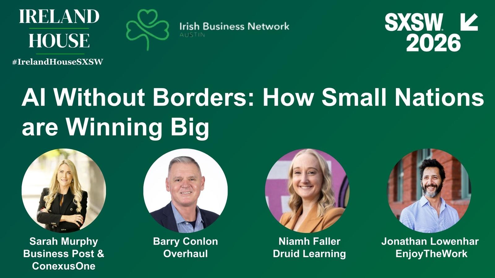 This panel, presented by the Irish Business Network Austin, explores how Ireland’s unique ecosystem - deep technical talent, strong research infrastructure, pro‑innovation policy, and a tightly connected founder community - creates an outsized impact on the global AI landscape. We’ll discuss what the U.S. can learn from Ireland’s model, why small‑nation agility cultivates big‑nation opportunity, and how Irish‑U.S. collaboration is accelerating AI innovation across the Atlantic.