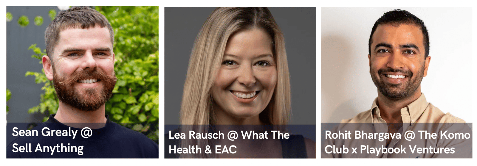 βYou'll be learning from Sean Grealy @ Sell Anything x Lea Rausch @ What The Health & Expert Author Community x Rohit Bhargava @ The Komo Club x Playbook Ventures.