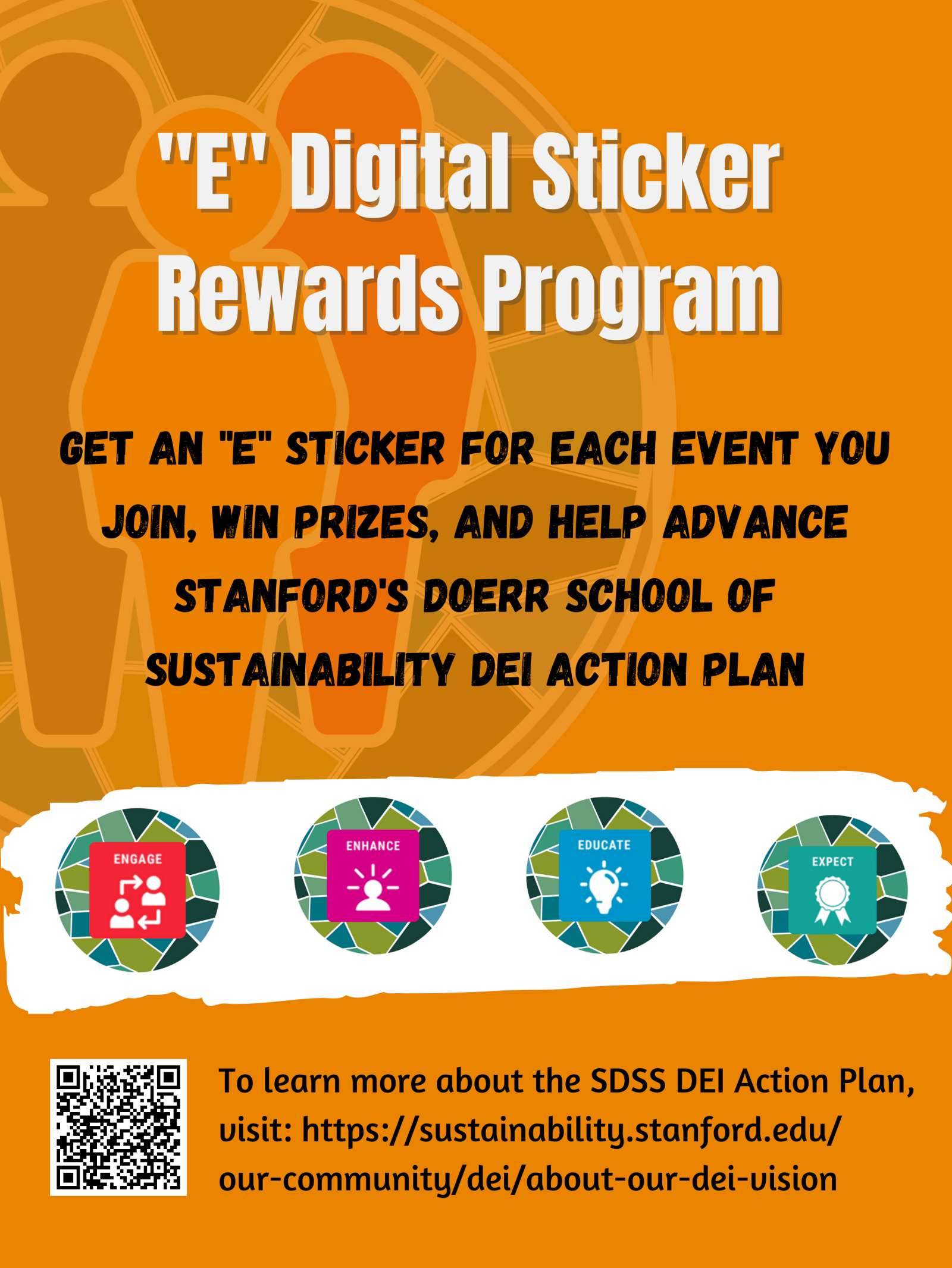 The event is open to all of the Stanford community but Stanford Doerr School of Sustainability community members attending this Coffee Convo will earn a digital "e" sticker, as part of the efforts toward creating more awareness around the Stanford Doerr School of Sustainability DEI Action Plan.