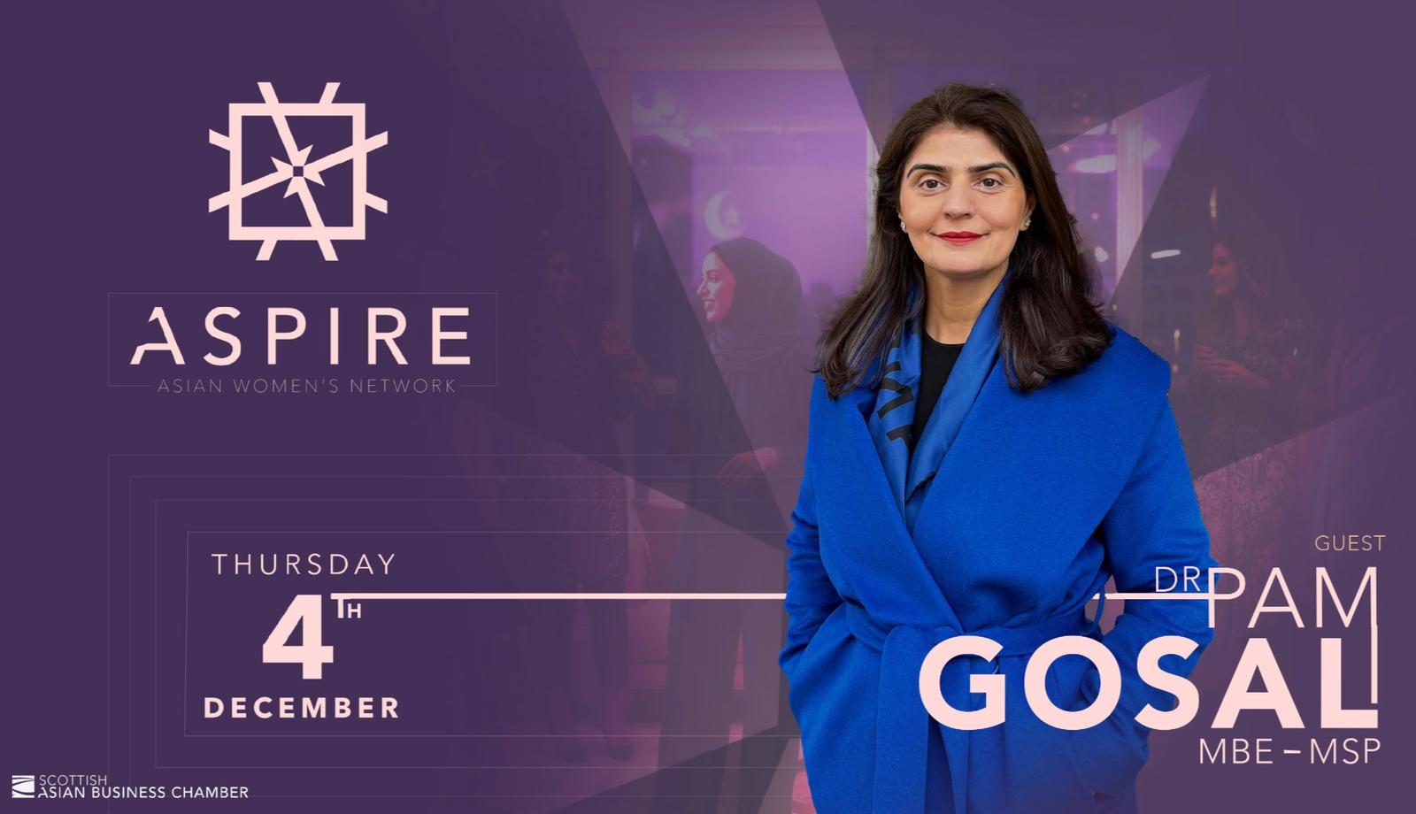 Aspire is the Scottish Asian Business Chamber’s women’s network - a community where Asian women come together through sharing journeys, connection, pride and identity.