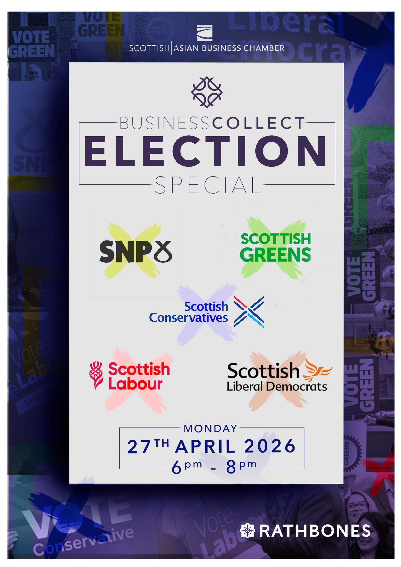 The Scottish Asian Business Chamber reserves the right to approve attendance at Business Collect events. Representatives and employees of public bodies and corporate organisations are not permitted to attend without prior approval.