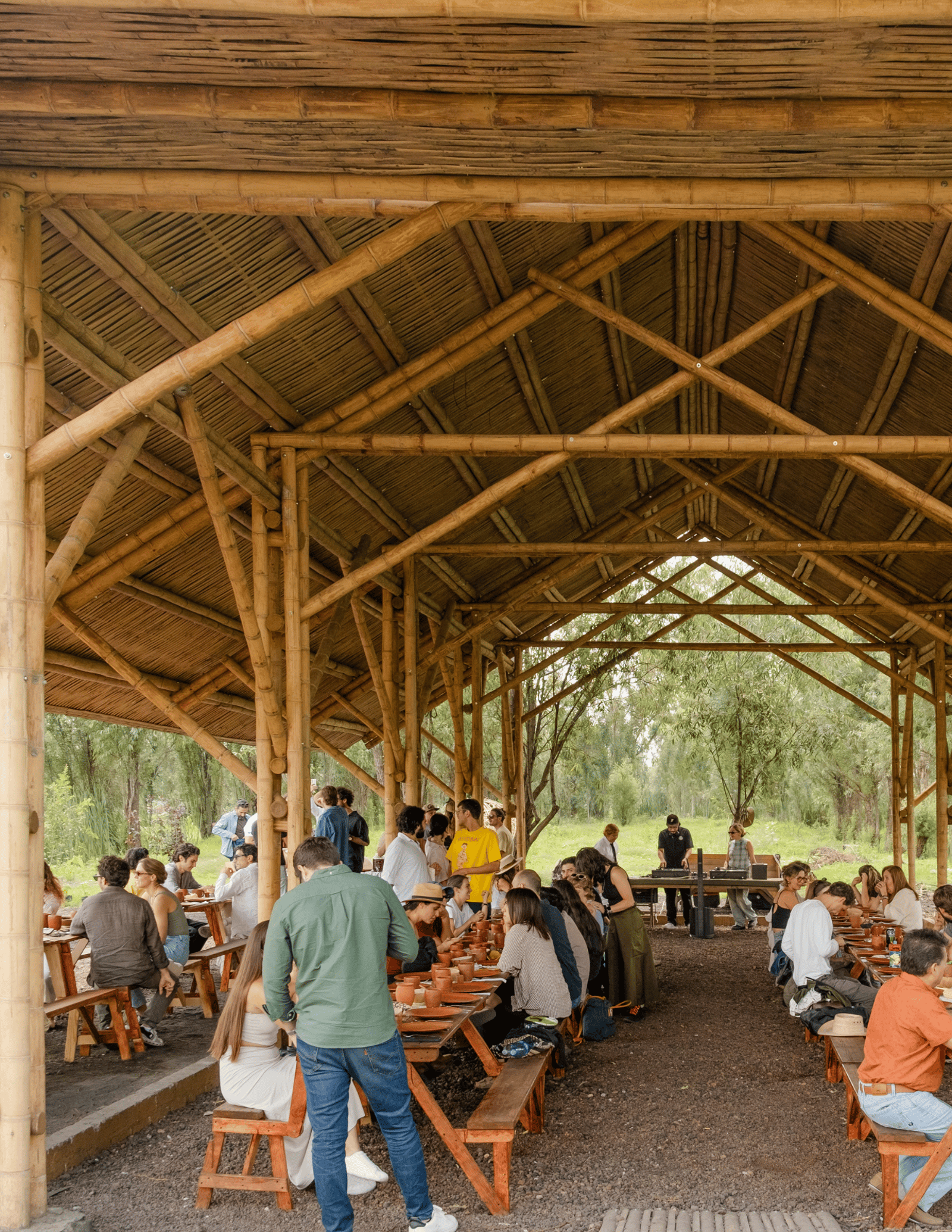 Al llegar, nuestros invitados de OFRÆNDA S2S son recibidos con sorprendentes presentaciones al atardecer, una colaboración creativa entre Rob Woodcox y Adeléyde musizalizada por Ilhem, y una cena de la granja a la mesa por María Graue.