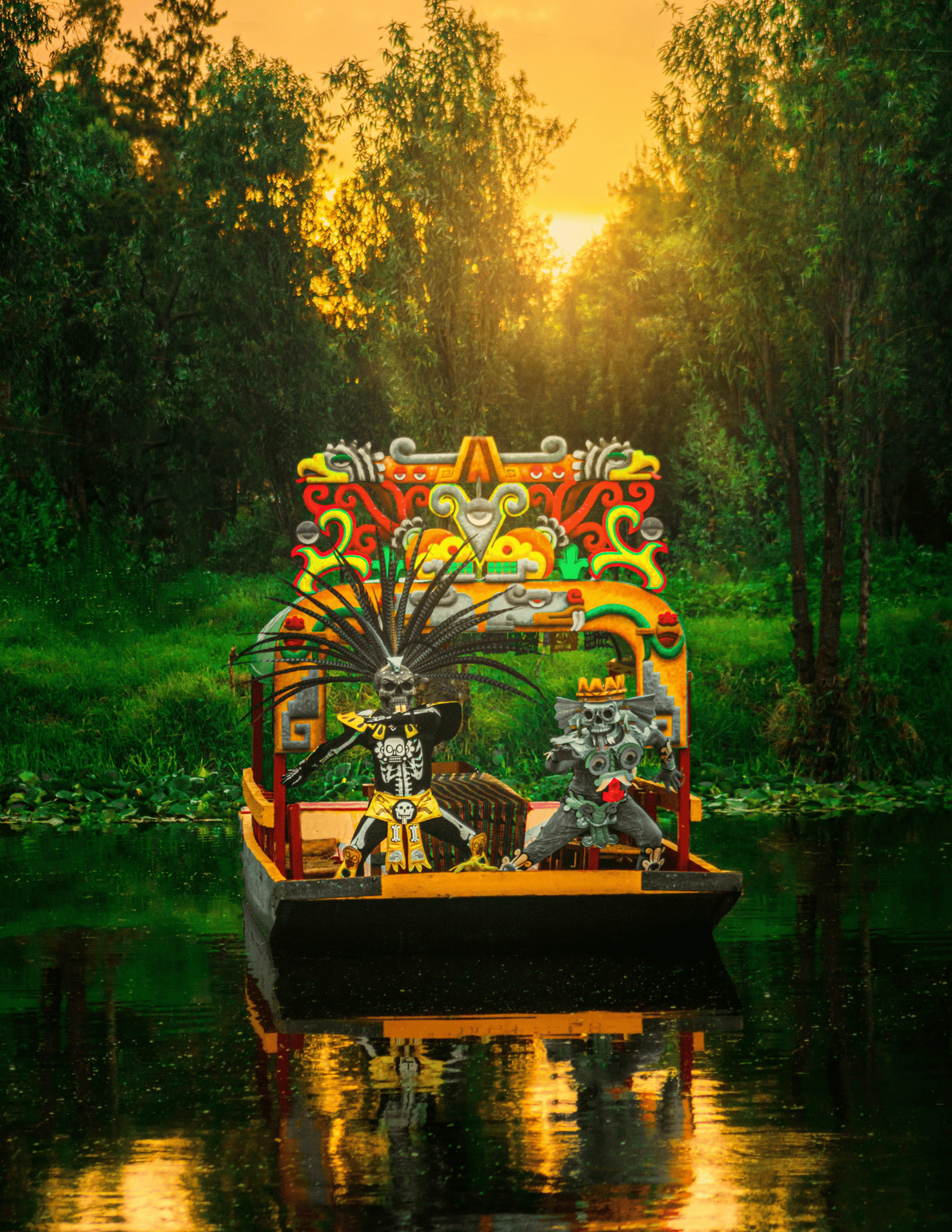 Docks & Boat transport - begins at 8:30PM and runs every half hour - OFRÆNDA SE Guests will embark the trajineras for a floating boat journey through the canals into the Land of the Dead.