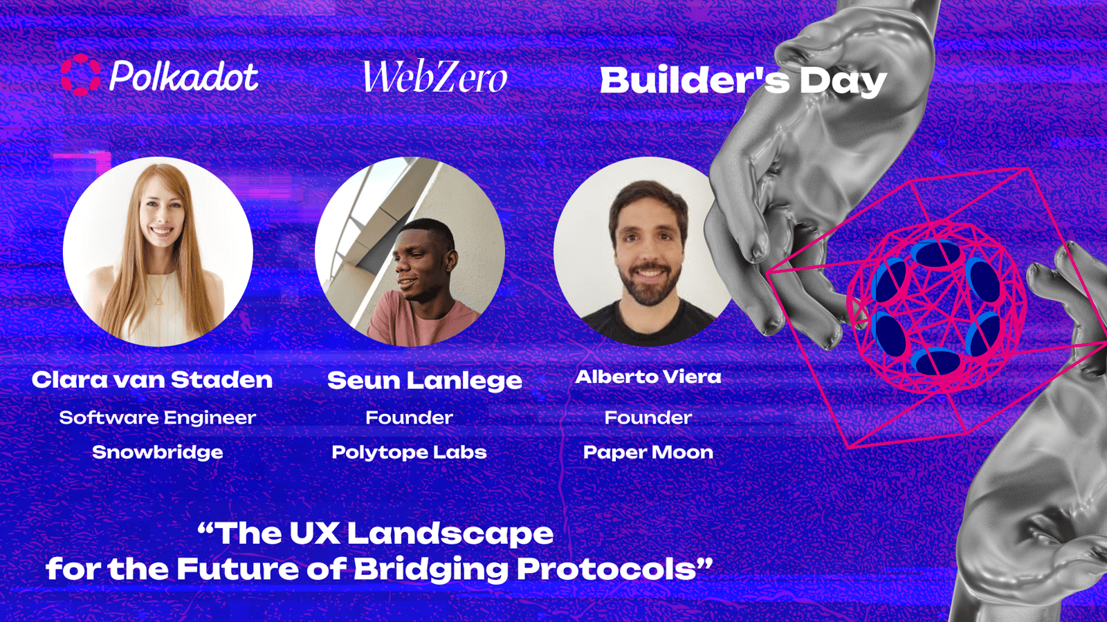 โSacha Lansky (moderator), a contributor to building the developer community in the Polkadot ecosystem, having previously worked as a Developer Relations Engineer at Parity Technologies.