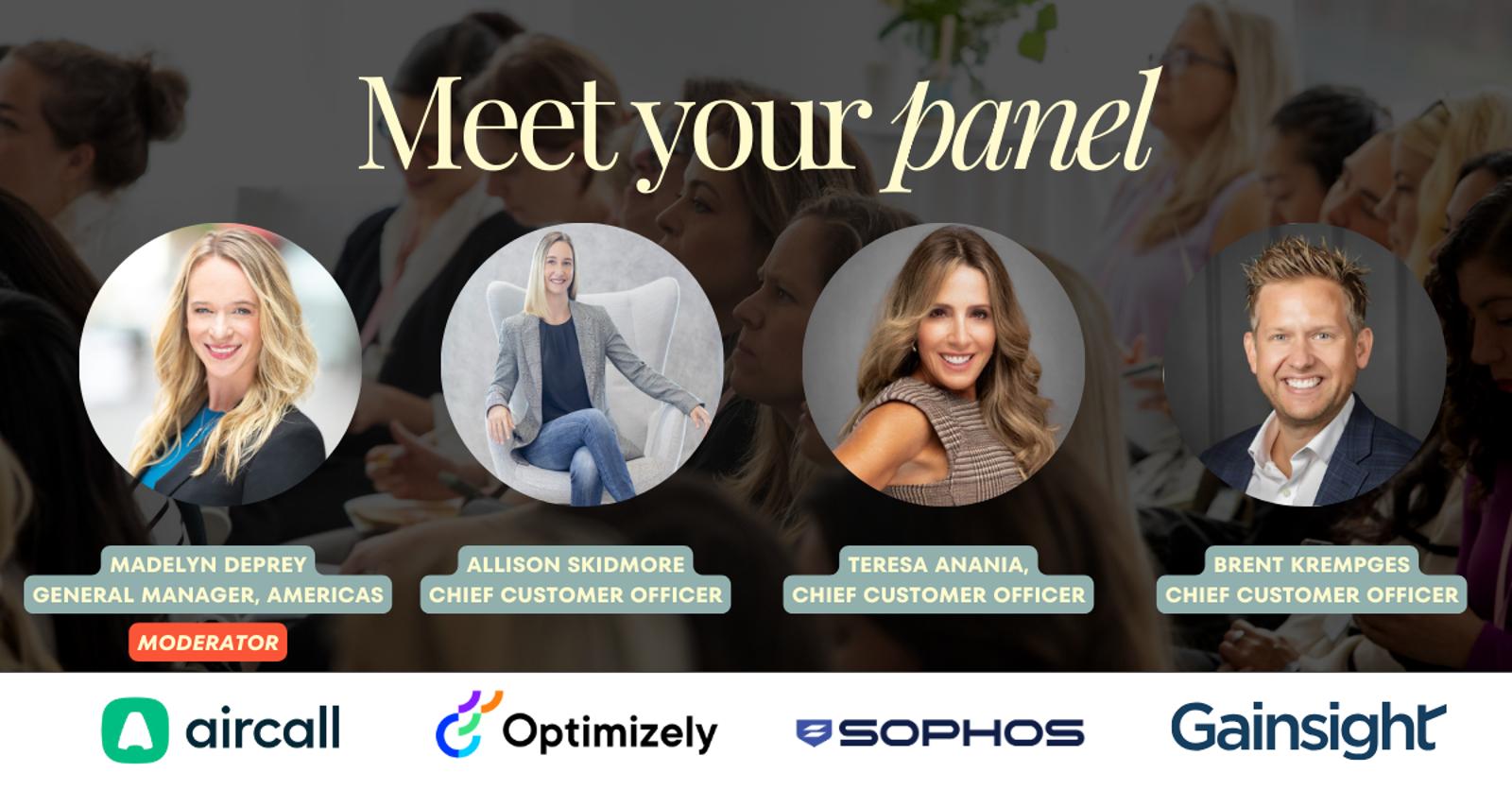 Join us for a live conversation, moderated by Madelyn DePrey, General Manager of The Americas at Aircall, with three Chief Customer Officers from Gainsight, Sophos, and Optimizely - leaders responsible for some of the world’s most sophisticated customer organizations.
