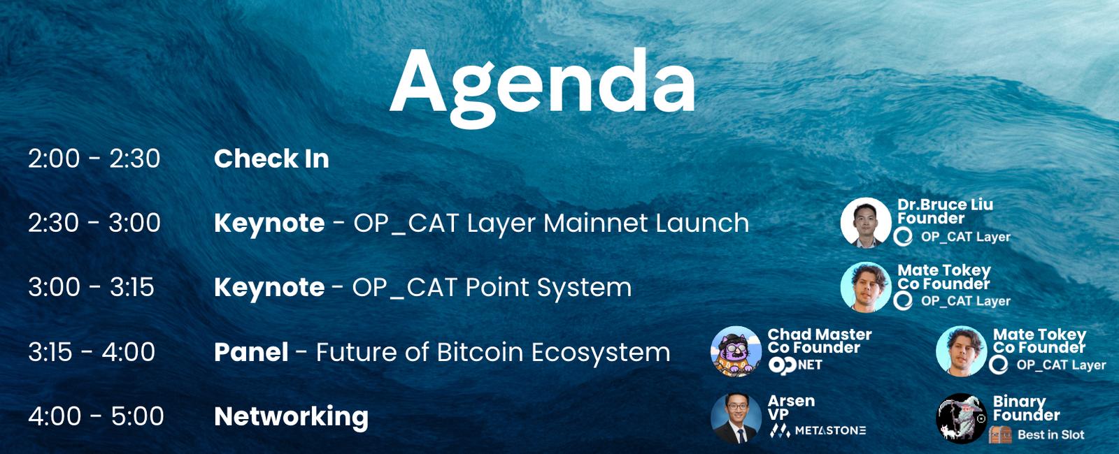 Join us for a focused mini launch of OP_CAT Layer, featuring keynotes and panel discussions with leading Bitcoin ecosystem builders and partners.