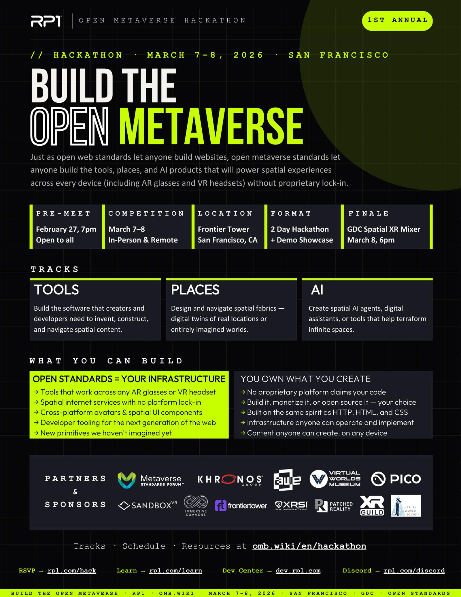 Open Metaverse Hackathon Pre-Meet: Learn from the Founders of RP1 to understand the future of the spatial internet before the hackathon begins.
