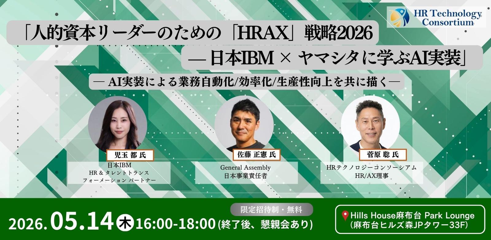 【General Assembly特別ご招待】人的資本リーダーのための「HRAX」戦略2026 — 日本IBM × ヤマシタに学ぶAI実装」― AI実装による業務自動化/効率化/生産性向上を共に描く―