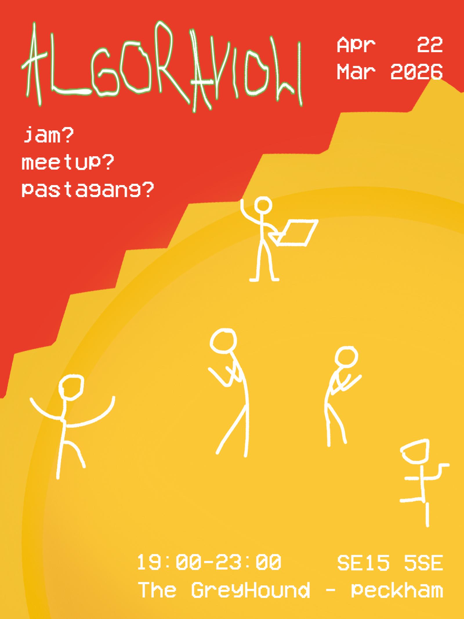ββThis is a Pastagang event so nobody knows! This will be an entirely improvised and jammed-in-the-moment event. Anything can happen. There'll probably be some live coding jamming and performances though, but not necessarily! Iβve been told by one of the pastagangers: