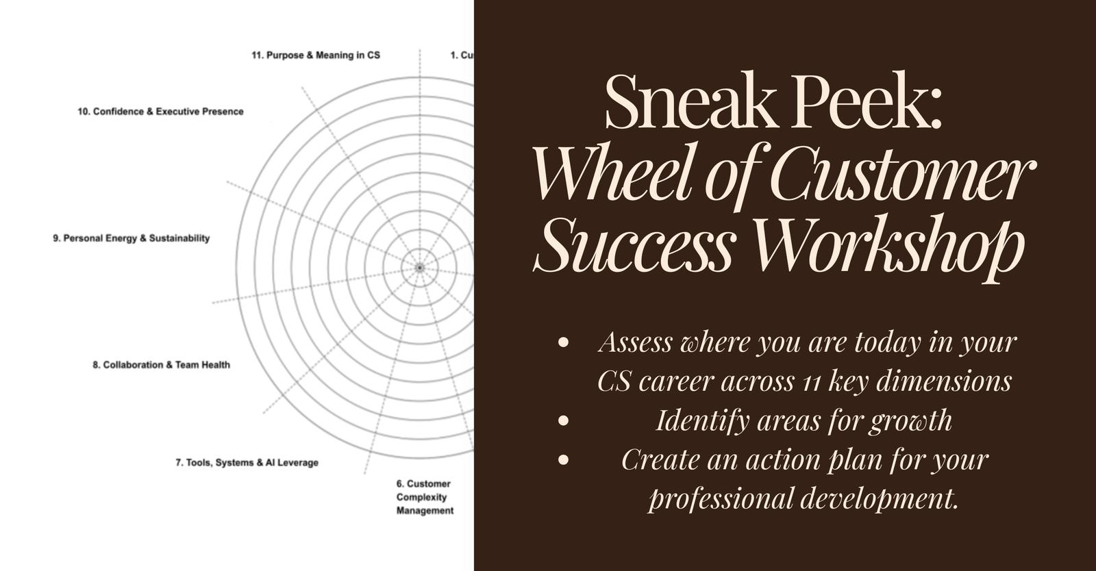 Through a structured, guided exercise - "The Wheel of Customer Success" - you’ll step back from day-to-day execution to reflect on where you’re investing your time and energy today, where you want to grow next, and what will meaningfully move you forward as a leader.
