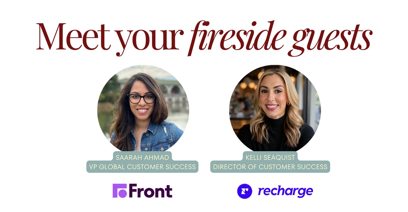 6:30-7:10pm: Fireside chat with Saarah Ahmad, VP of Customer Success at Front, and Kelli Seaquist, Director of Customer Success at Recharge: