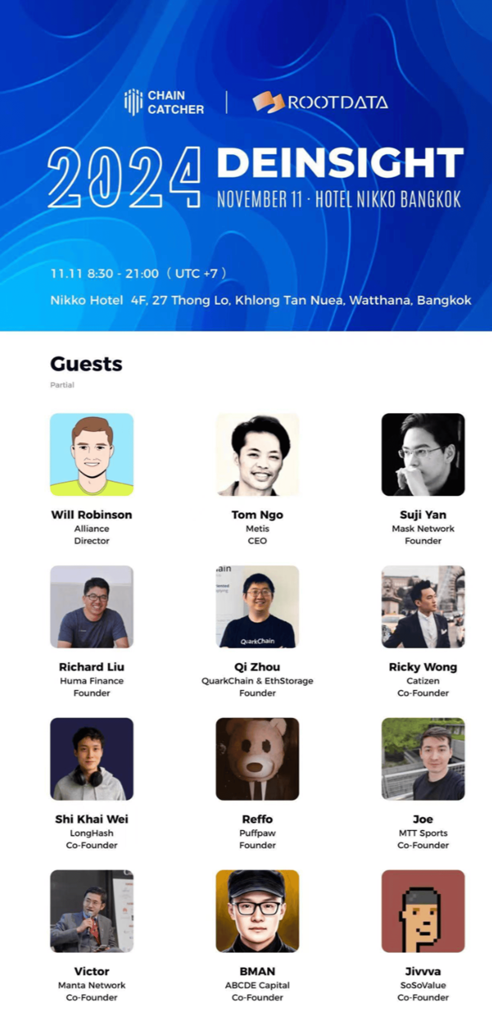 Summit on November 11th, fostering cross-industry dialogues in DeInsight 2024 is a Side Event to the 2024 Ethereum Developers Conference, jointly organized by ChainCatcher, a leading Chinese Crypto media, and RootData, a Crypto asset data platform.