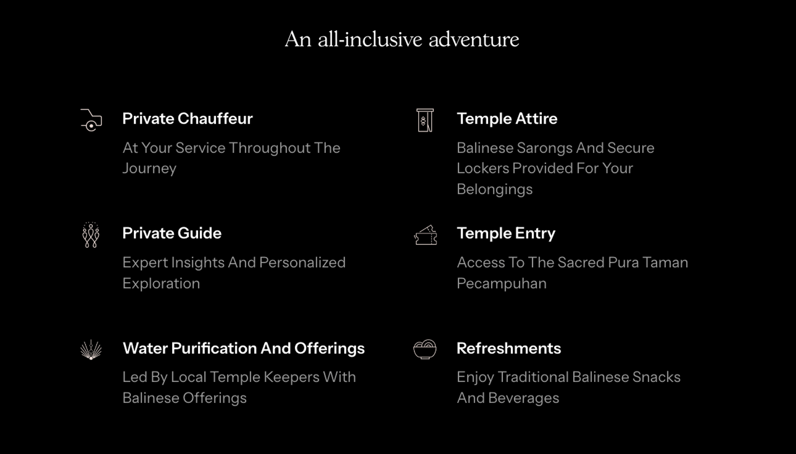 Not Included: Lunch is not provided, but our guide will recommend local restaurants where you can enjoy an authentic Balinese meal.