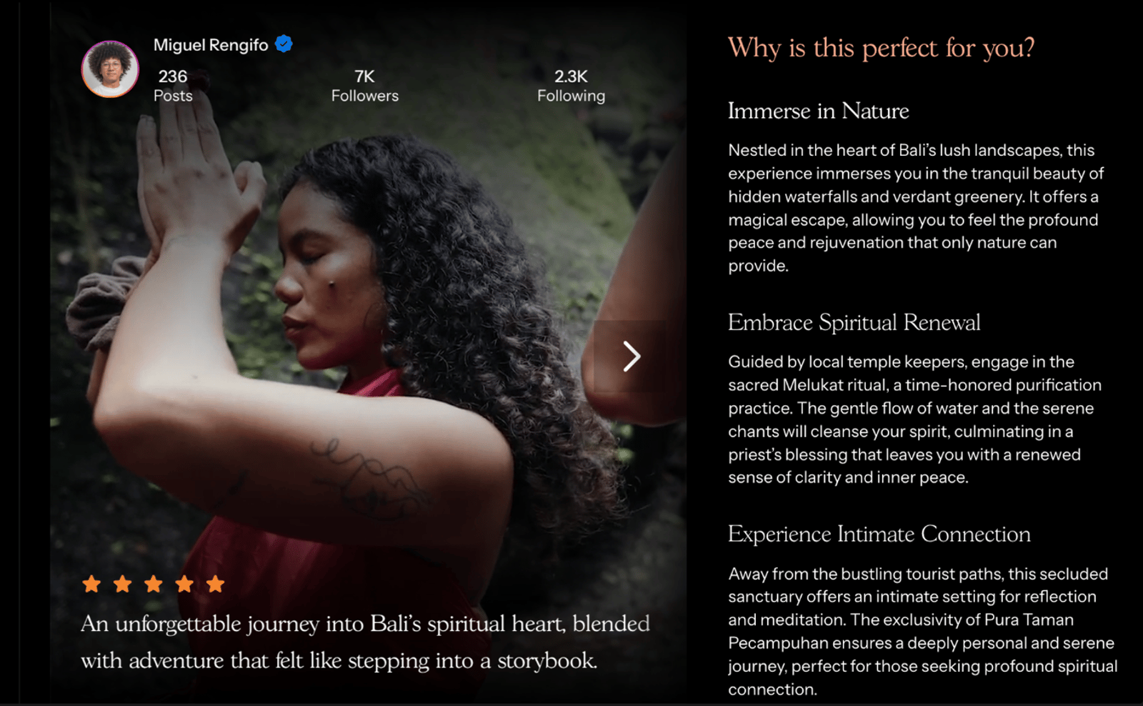 Walk through calm paths to reach the temple. Take part in prayers, offerings, and water rituals that cleanse your mind, body, and spirit, ending with a blessing from a local priest. The relaxing sounds of waterfalls and the quiet setting make it a perfect retreat from busy tourist spots.