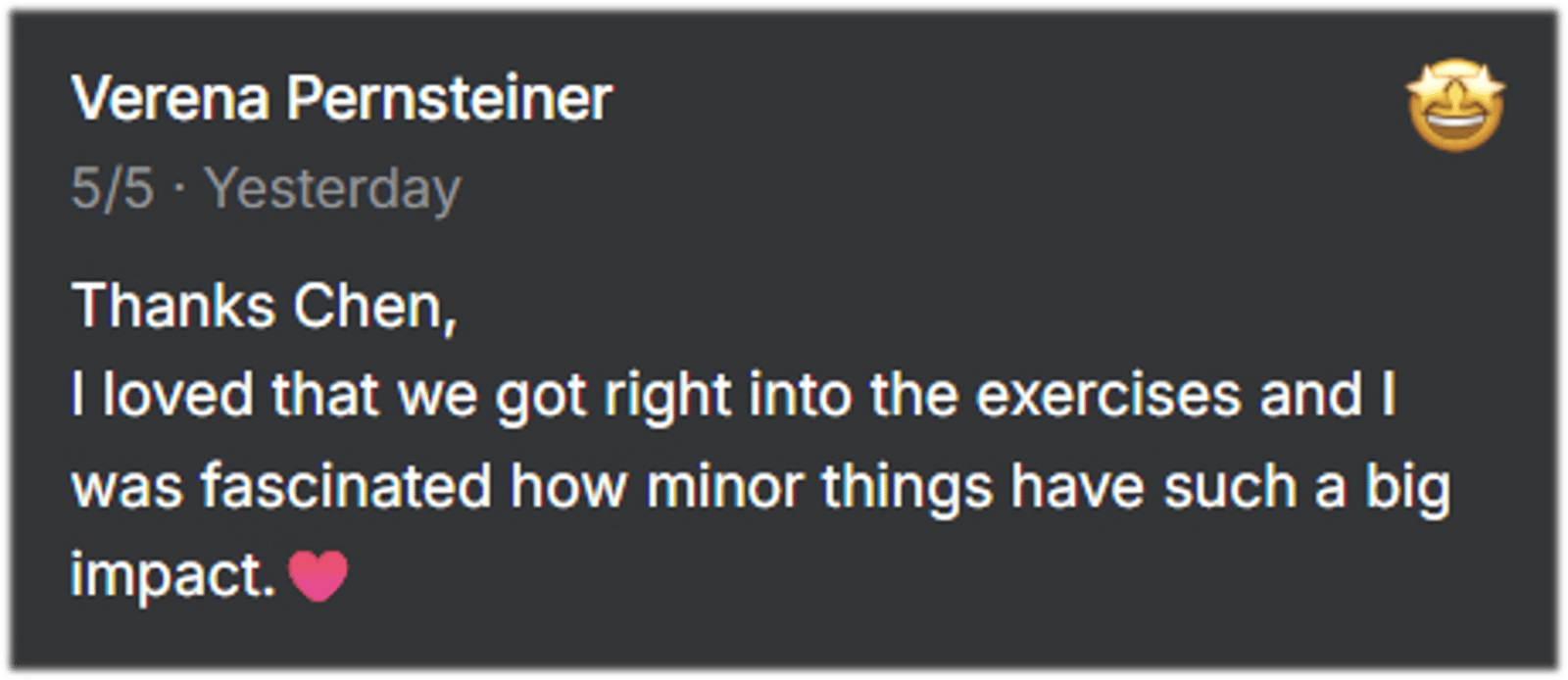 If you don't know Chen's work yet, we don't expect you to take our word for it. A workshop like this — from a TED speaker, 2025 Stevie Award winner, endorsed by Esther Perel — would typically run €200+. The €50 is our way of saying: come experience it first. The proof is in the power of the work.