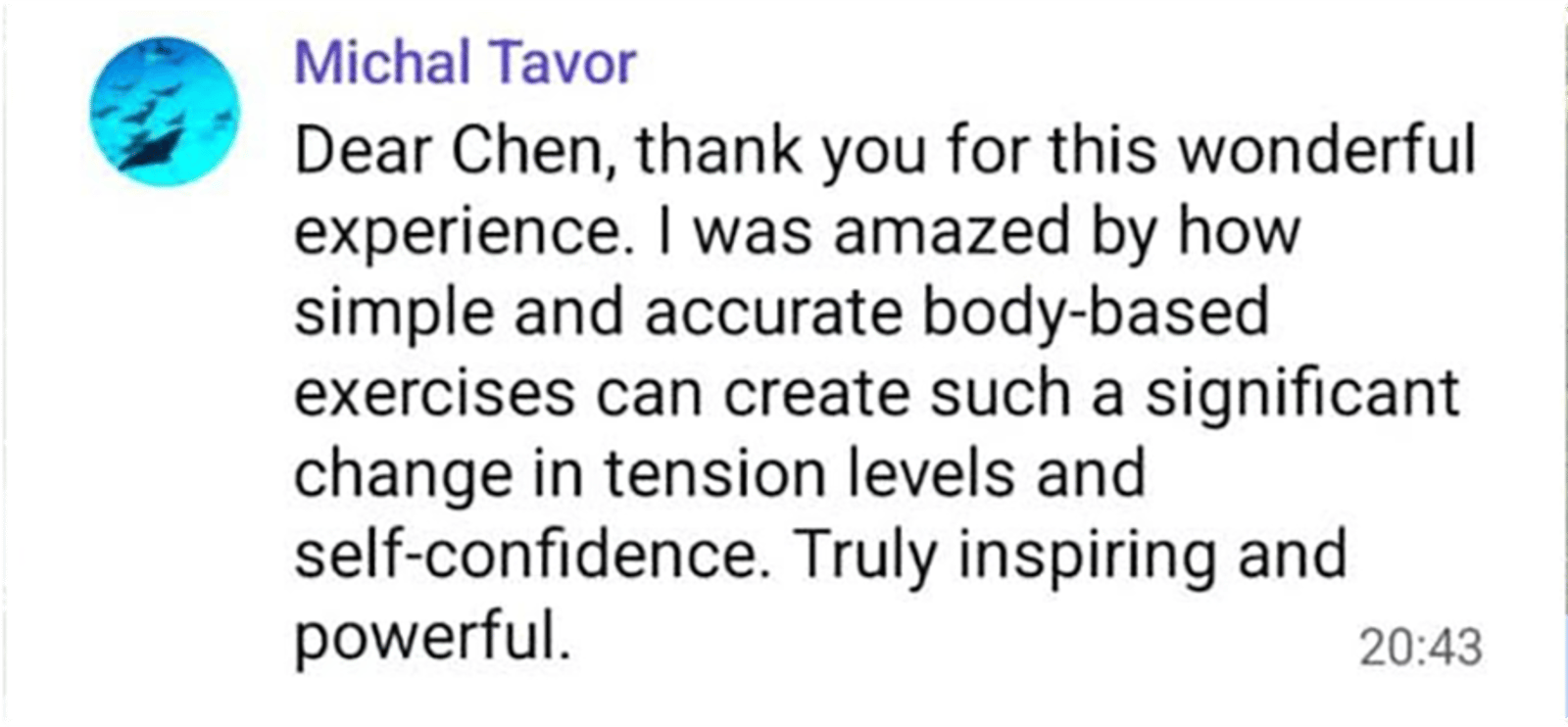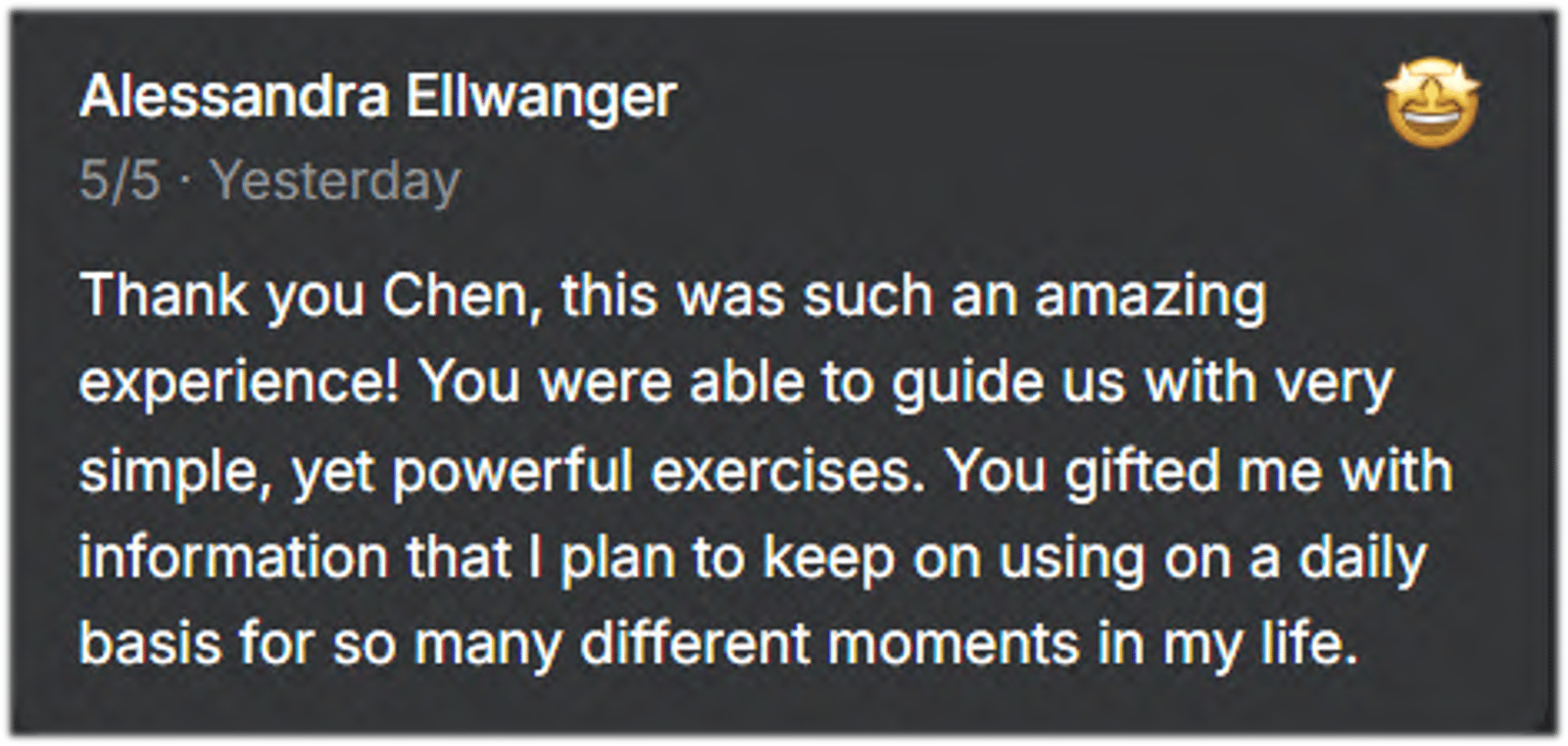 "I found myself using the practices from our session exactly as we practiced before a meeting with potential investors — and the impact was amazing."