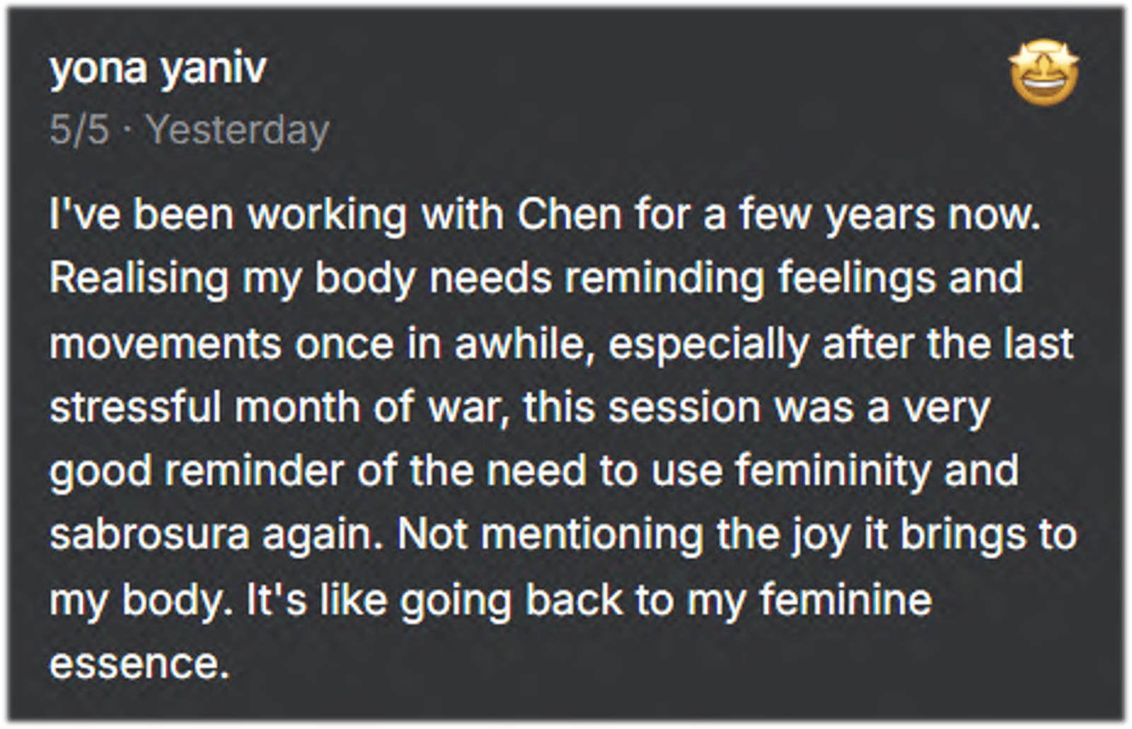 Chen Lizra is an award-winning Somatic Coach, 2025 Stevie Award Winner, and TED speaker whose talk on the power of seduction has reached 12 million views. She is the founder of The Power of Somatic Intelligence and has spent over a decade guiding high-achieving leaders, founders, and executives to lead with embodied authority. She trained for 15+ years in Cuban Sabrosura — one of the world's most sophisticated embodied movement traditions — and translates that into practical, research-backed skills for high-pressure environments.