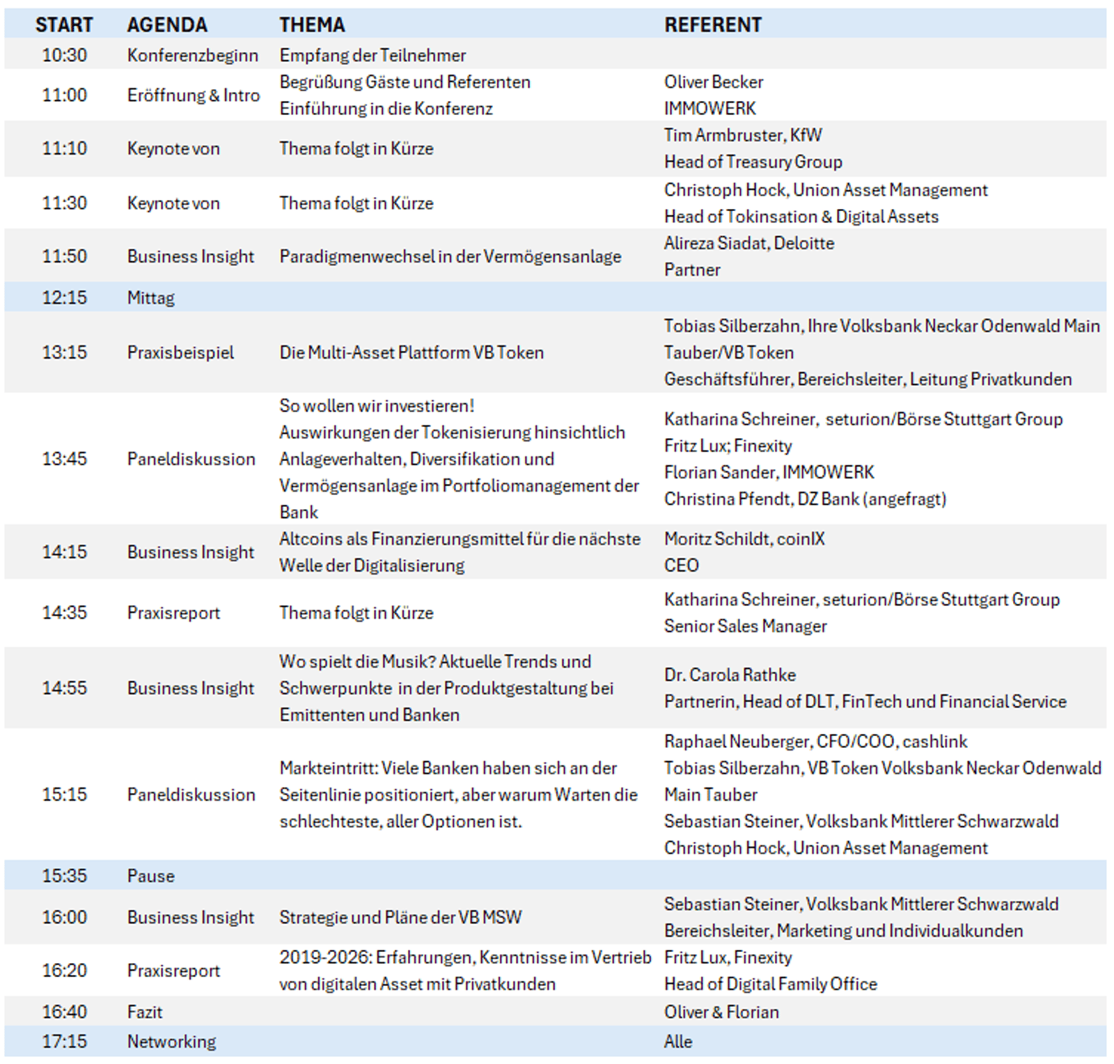 Unsere Referenten bringen echtes, fundiertes Praxiswissen mit. Arbeiten und wirken an vorderster Front von Produkt, Kunden, Regulatorik und Infrastruktur.