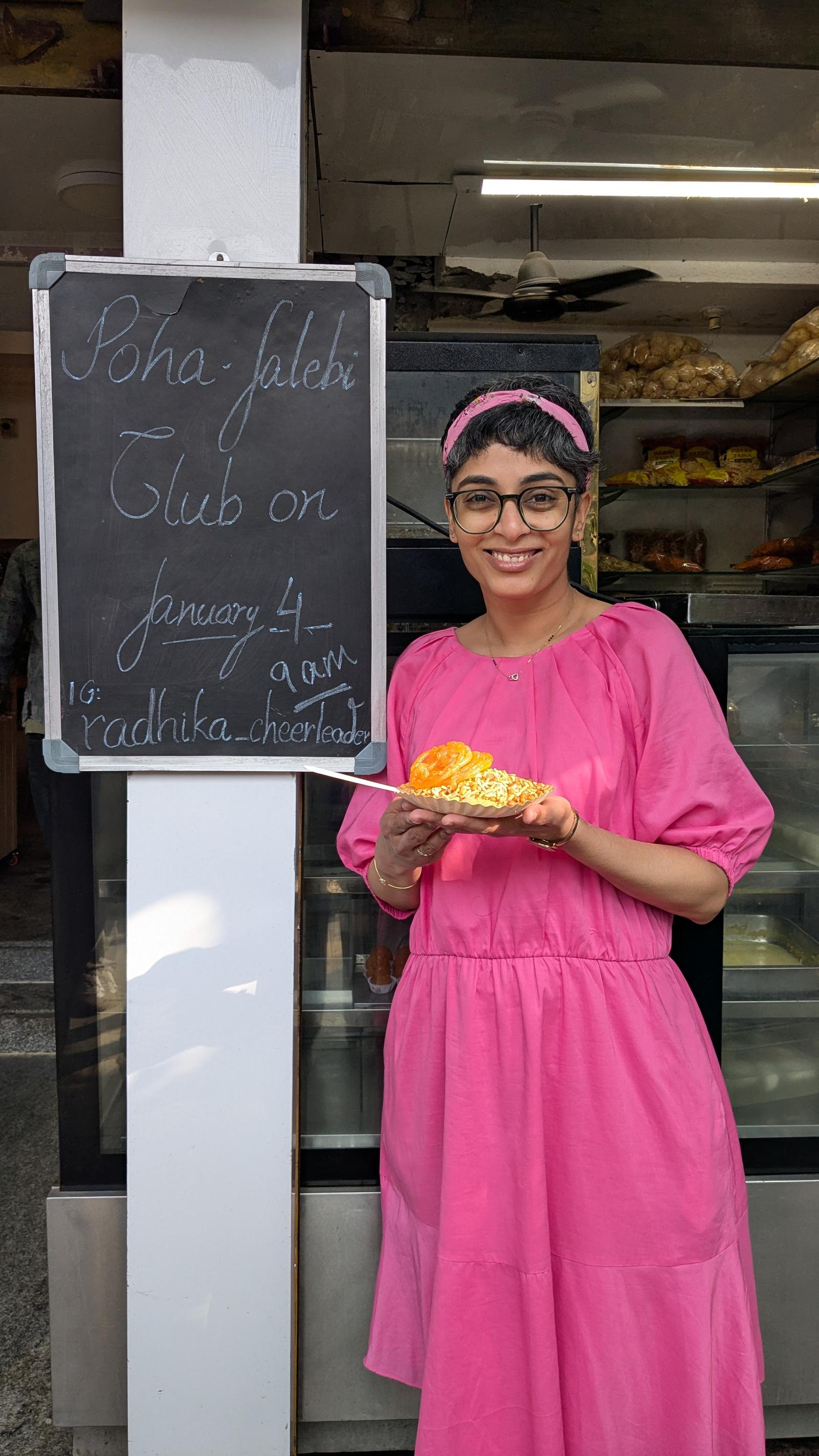 You pay for what you eat - costs less than INR 100 for a plate of Poha-Jalebi and Chai.