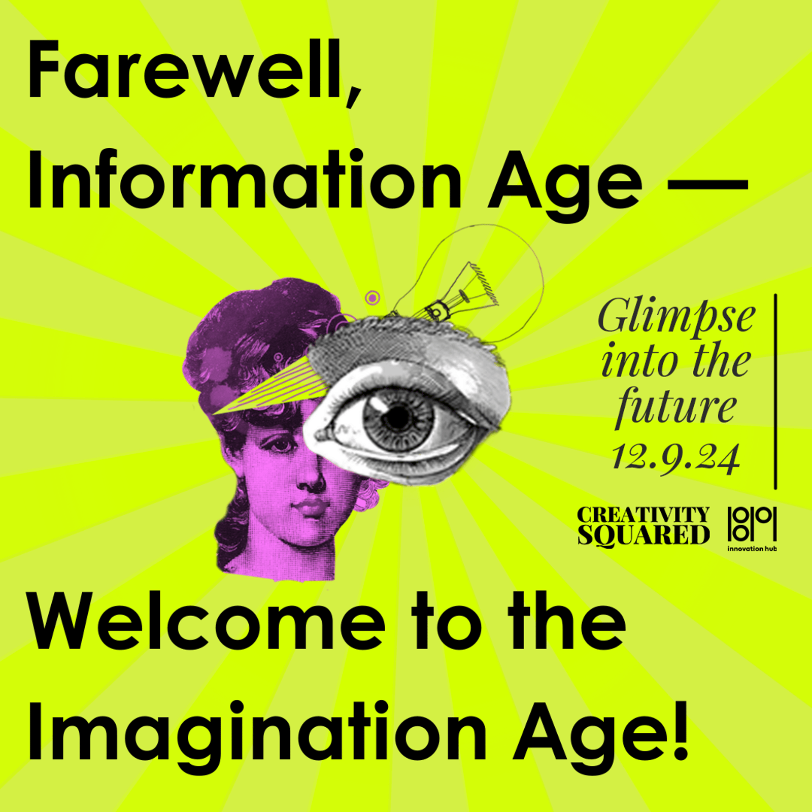 Creativity Squared is partnering with the 1819 Innovation Hub on their Innovation Buzz Series to bring you a special salon-style viewing of Helen Todd's keynote presentation, "Farewell, Information Age — Welcome to the Imagination Age!"