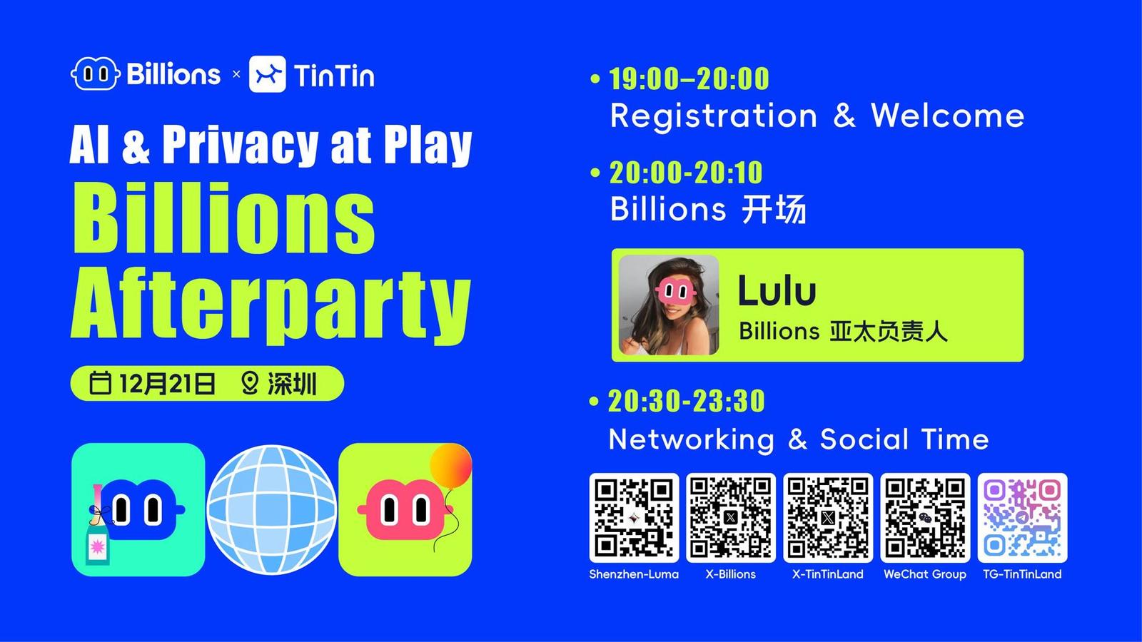 这场特别活动由 Billions 团队 × TinTinLand 联合发起,将 “隐私技术 × AI 未来 × 社群交流” 放进一个更有趣的语境里,让科技也能变得好玩、可感知、有温度。
