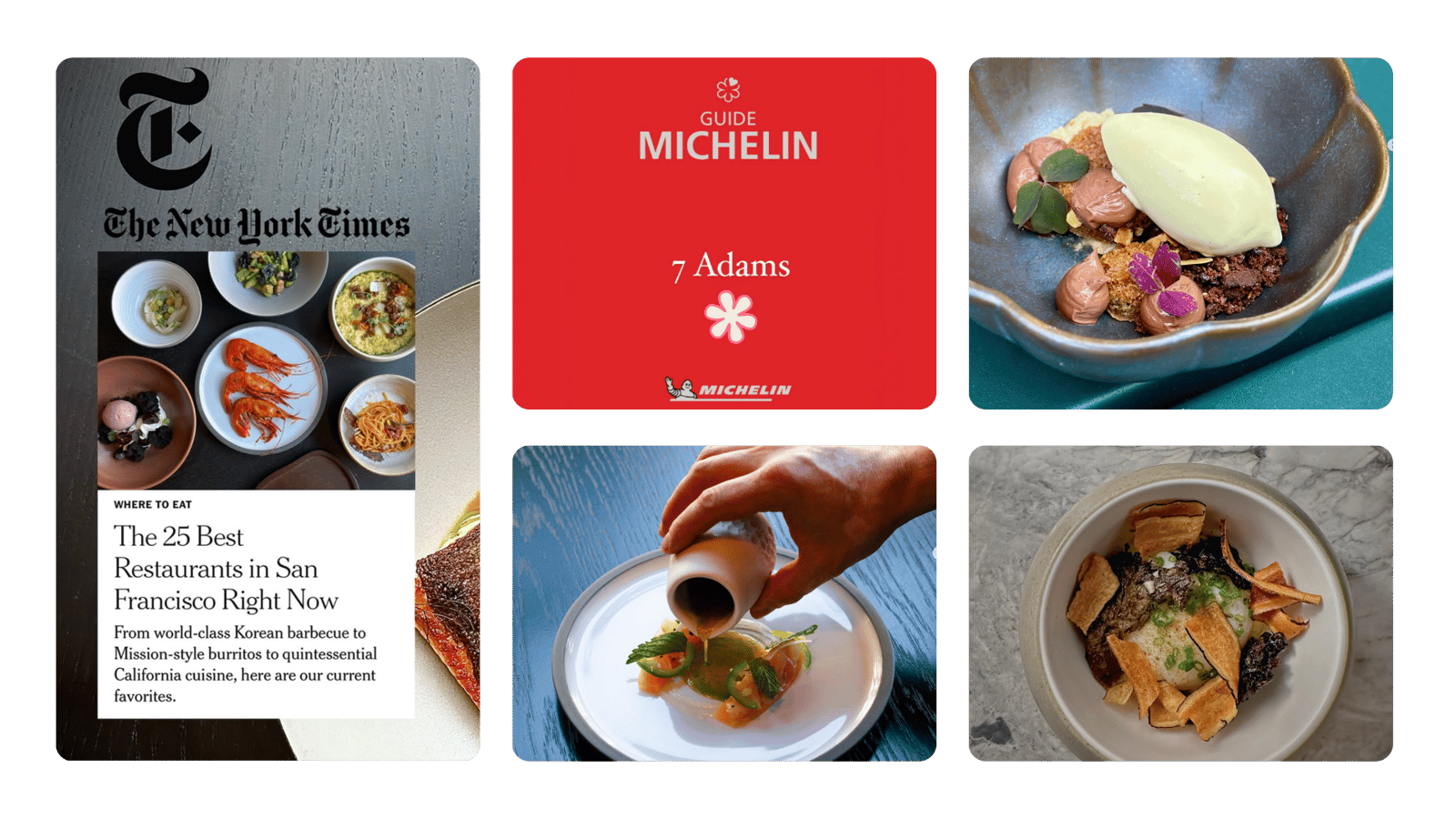 🍽️ The venue: 7 Adams (Michelin-starred Restaurant). Named as one of The 25 Best Restaurants in San Francisco by The New York Times