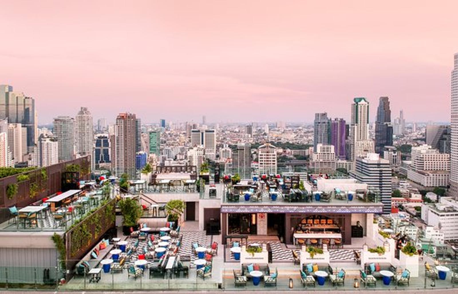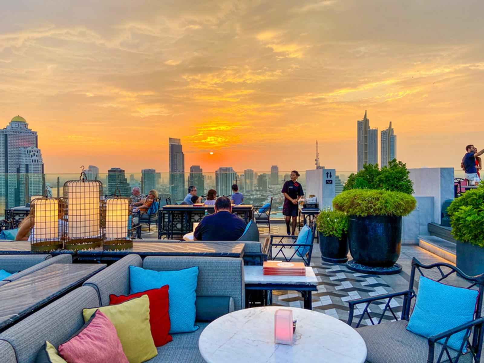 perched atop the Bangkok Marriott Hotel The Surawongse, provides a breathtaking panoramic 360° view of the city's skyline, making it the ideal setting to enjoy a stunning sunset.
