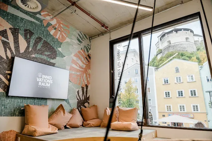Treffpunkt ist der Innovationsraum Kufstein - mitten im Zentrum, 100 Meter vom Bahnhof, im 1. Stock des KISS am Unteren Stadtplatz. 650 m², großer Screen und der richtige Vibe für das, was wir vorhaben.