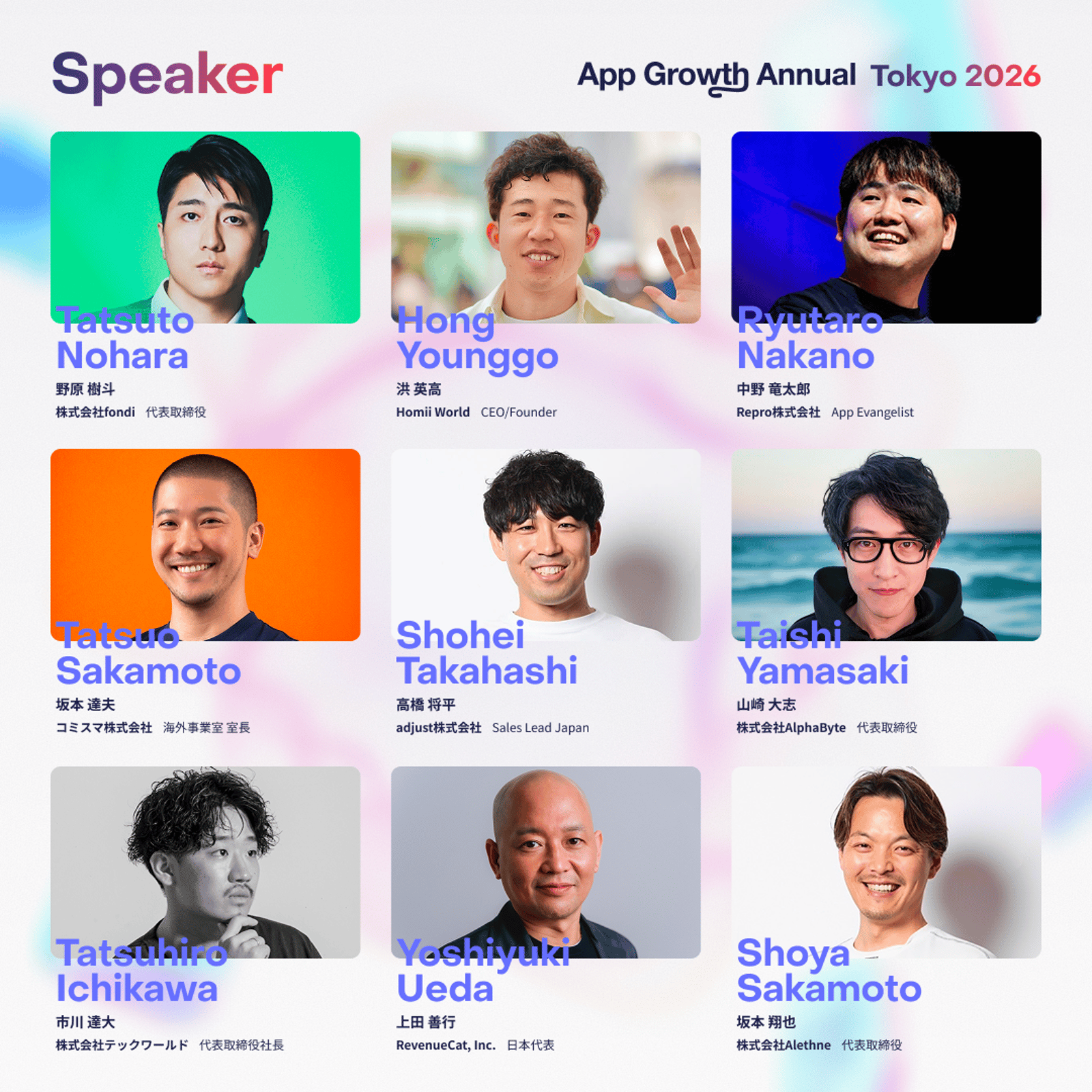 日本で成長を牽引してきたリーダーや世界を目指す起業家が登壇。アプリグロースを多角的に掘り下げます。