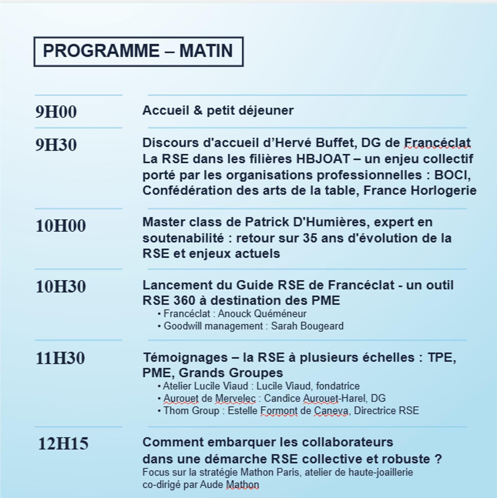 Nous avons le plaisir de vous inviter aux Rencontres RSE de Francéclat qui se tiendront le 22 avril à la Climate House. Cette année, la quatrième édition du prix RSE s’inscrira dans une journée entièrement dédiée à la RSE au sein de nos filières.