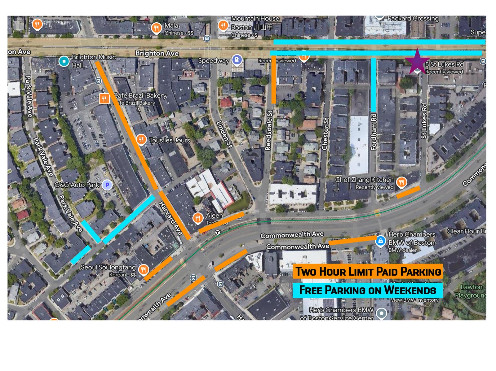 Parking: Street parking on Commonwealth Avenue or Brighton Avenue. See our parking guide graphic at the bottom. Attendees will receive an email from us or via Luma with more information. You can find a carpool here: https://docs.google.com/spreadsheets/d/1Y2sC9sbFFRasNnQDsjOqjBi24HcBcCMNMKaE-0NabRs/edit?usp=sharing