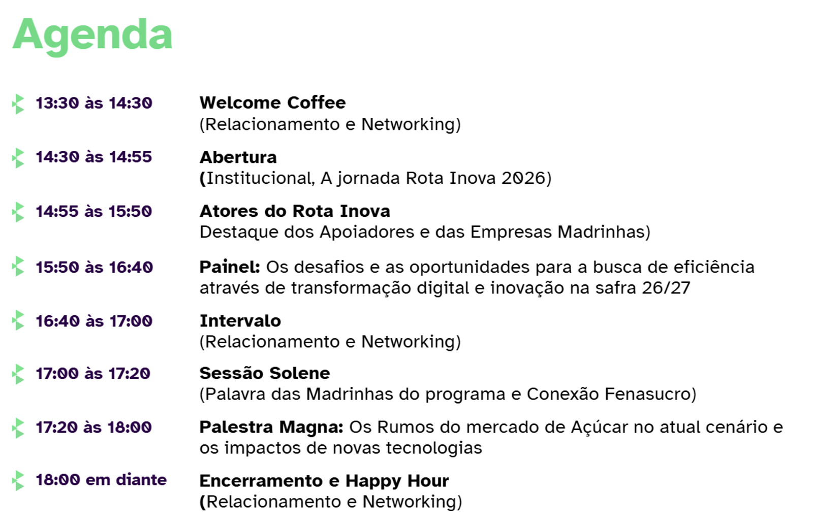 Em 2025 a inciativa trouxe ótimos resultados e agora, daremos início ao Rota Inova 2026, que este ano estará ainda mais forte! Mais empresas do setor, maior alcance, mais oportunidades de conexão com soluções inovadoras, apoio para iniciativas de fomento, e uma grande novidade: um veículo para investimento nas startups que passarem pelo programa e que estiverem dentro da tese do fundo.