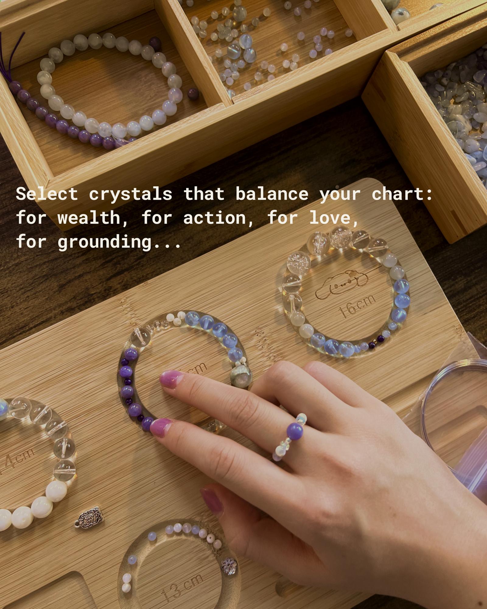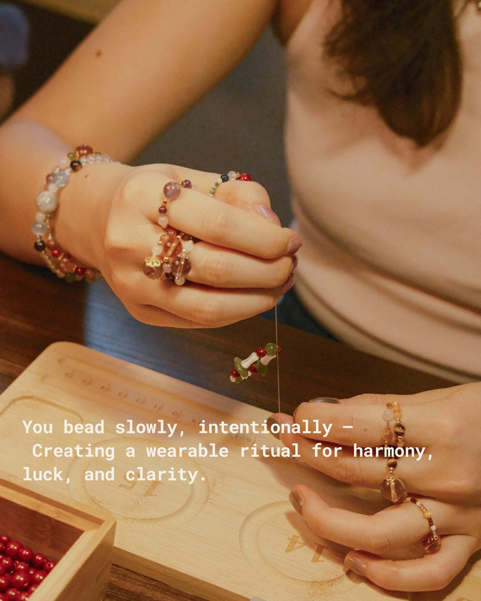 As you assemble your bracelet, you’ll be invited to set an intention — love, clarity, patience, courage, or connection — making the piece a quiet ritual, not just an accessory.