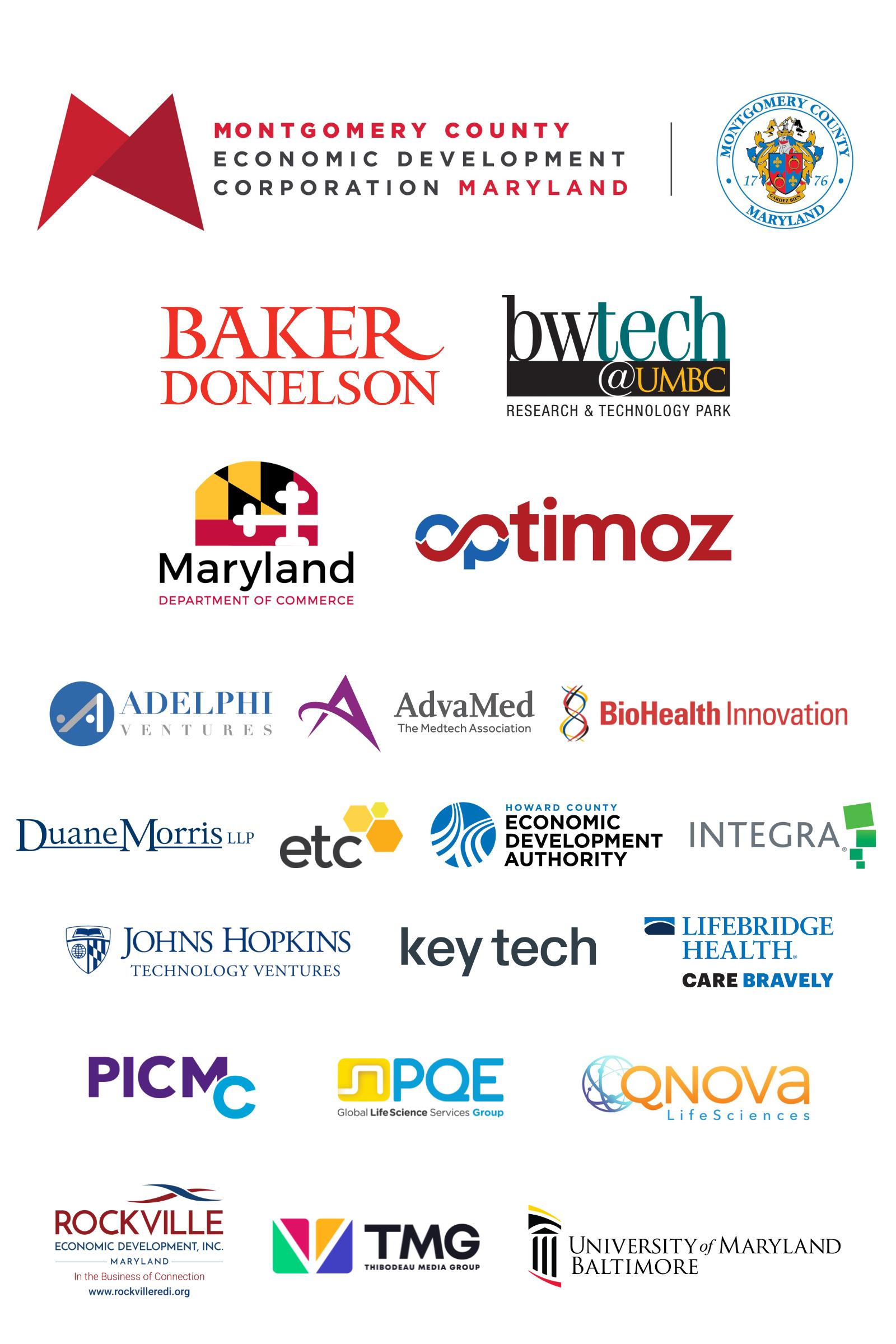 This event is generously sponsored by the Montgomery County Economic Development Corporation, Baker Donelson, bwtech@UMBC, the Maryland Department of Commerce, Optimoz, Adelphi Ventures, AdvaMed, BioHealth Innovation, Duane Morris, Emerging Technology Centers, the Howard County Economic Development Authority, Integra Life Sciences, Johns Hopkins Technology Ventures, Key Tech, LifeBridge Health, the Pinkney Innovation Complex for Science and Technology (PIC MC), PQE US, Inc., QNova Life Sciences, Rockville Economic Development, Inc., Thibodeau Media Group, and the University of Maryland, Baltimore.