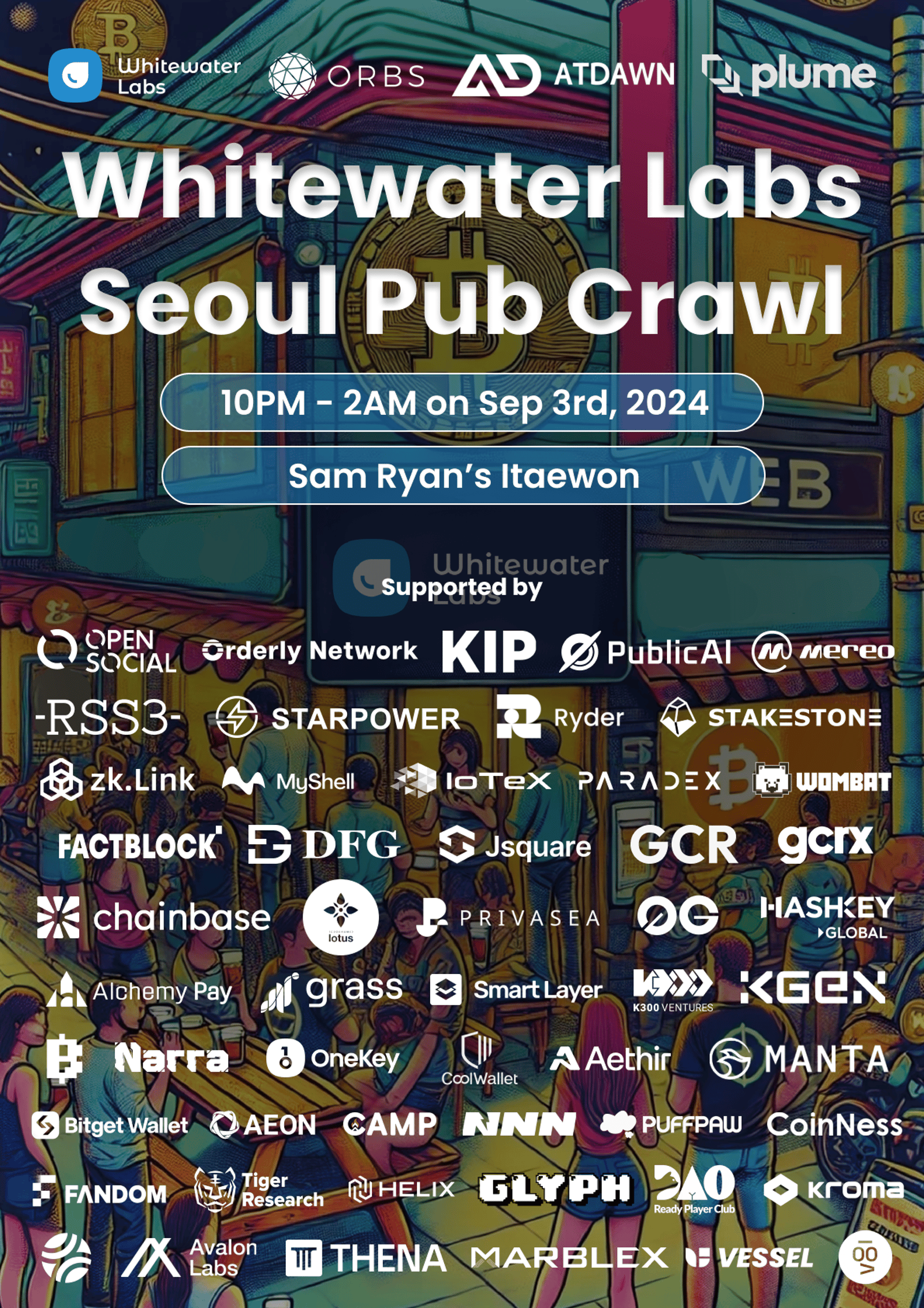 Welcome to Seoul! Whitewater Labs would like to welcome our wonderful partners and friends at one of the best sports pub in the center of Seoul! Feel free to join us and hang out with our friends, networks, builders, and KOLs from all over the world!