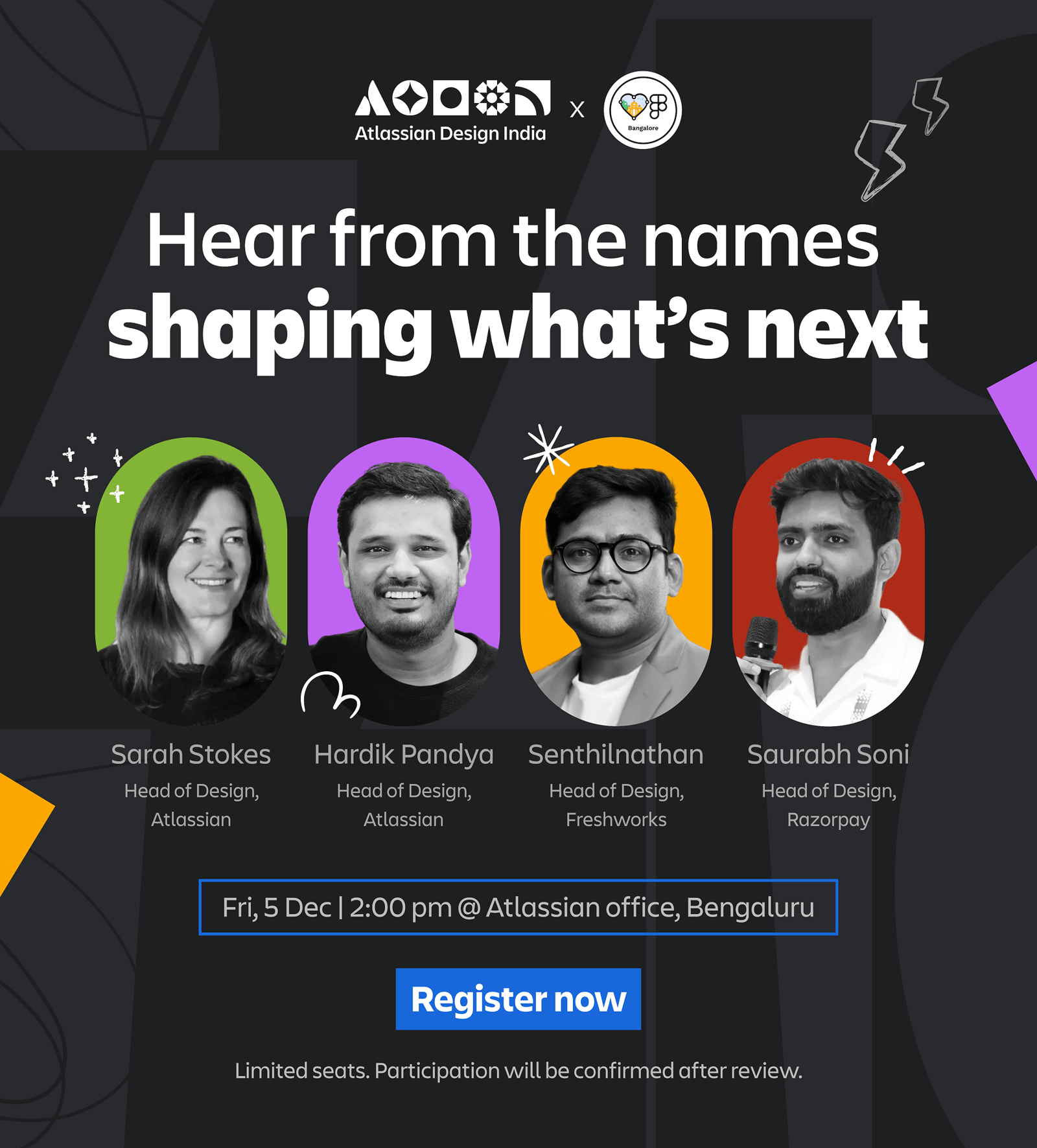 Join us for an electrifying day of design conversations, creativity, and collaboration with Atlassian Design India and Friends of Figma, Bangalore ⚡️