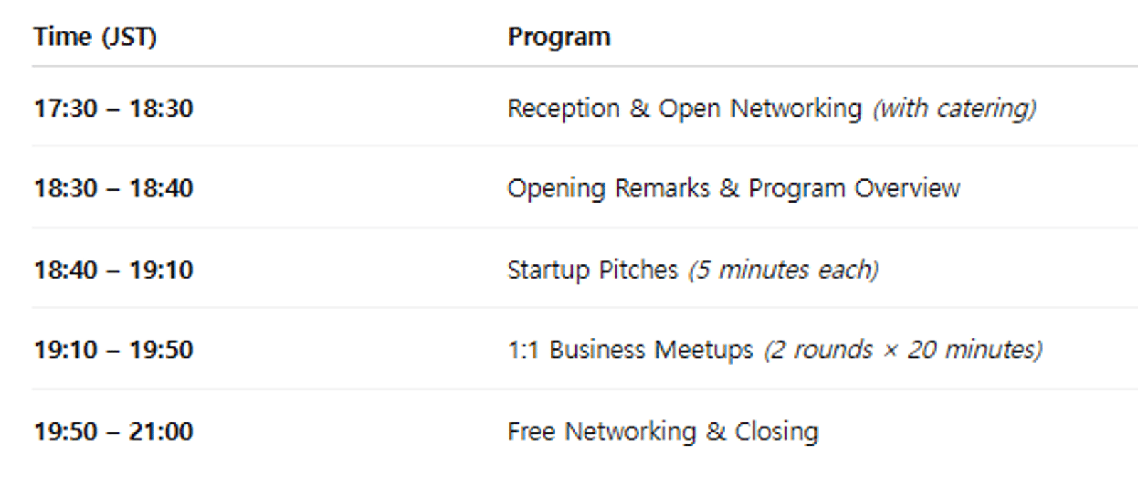 Each startup will have two 20-minute sessions, designed to facilitate practical partnership or investment discussions.