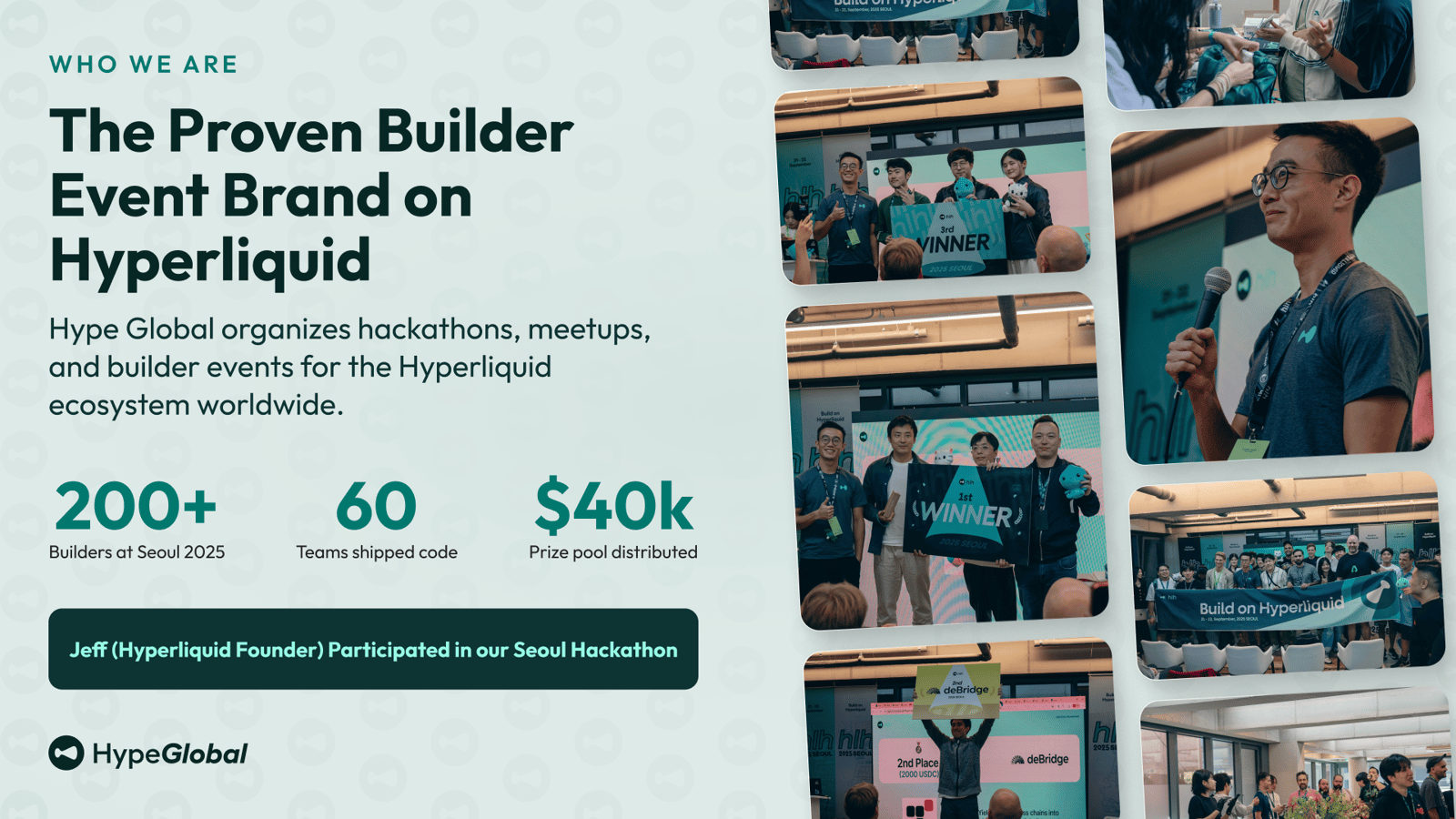 The flagship event of the HypeGlobal tour is back. After Seoul's 200+ builders and 60 teams shipping to mainnet, Singapore is going even bigger. Multi-day hackathon, top-tier mentors, serious prizes. Stay tuned.