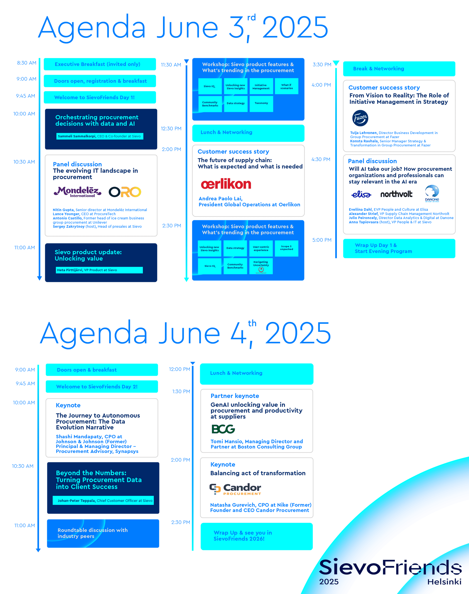 Join us at SievoFriends and be part of the conversations shaping the future of procurement - powered by insights, driven by practice, and strengthened by community.