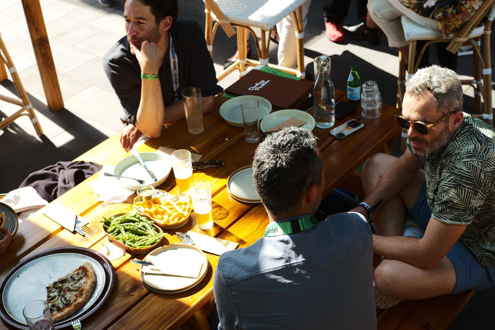 We've booked a table at a local cafe in Darling Square.