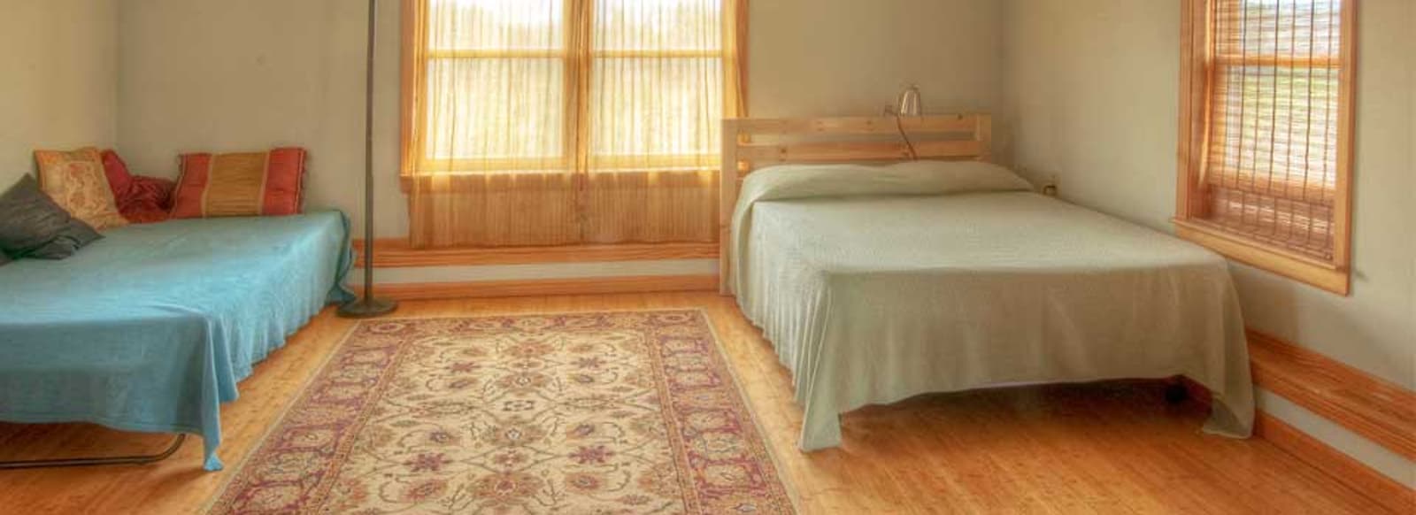 🛀 Enjoy an outdoor six-person sauna, hot tub, hiking trails, and three delicious home-cooked vegetarian meals a day.