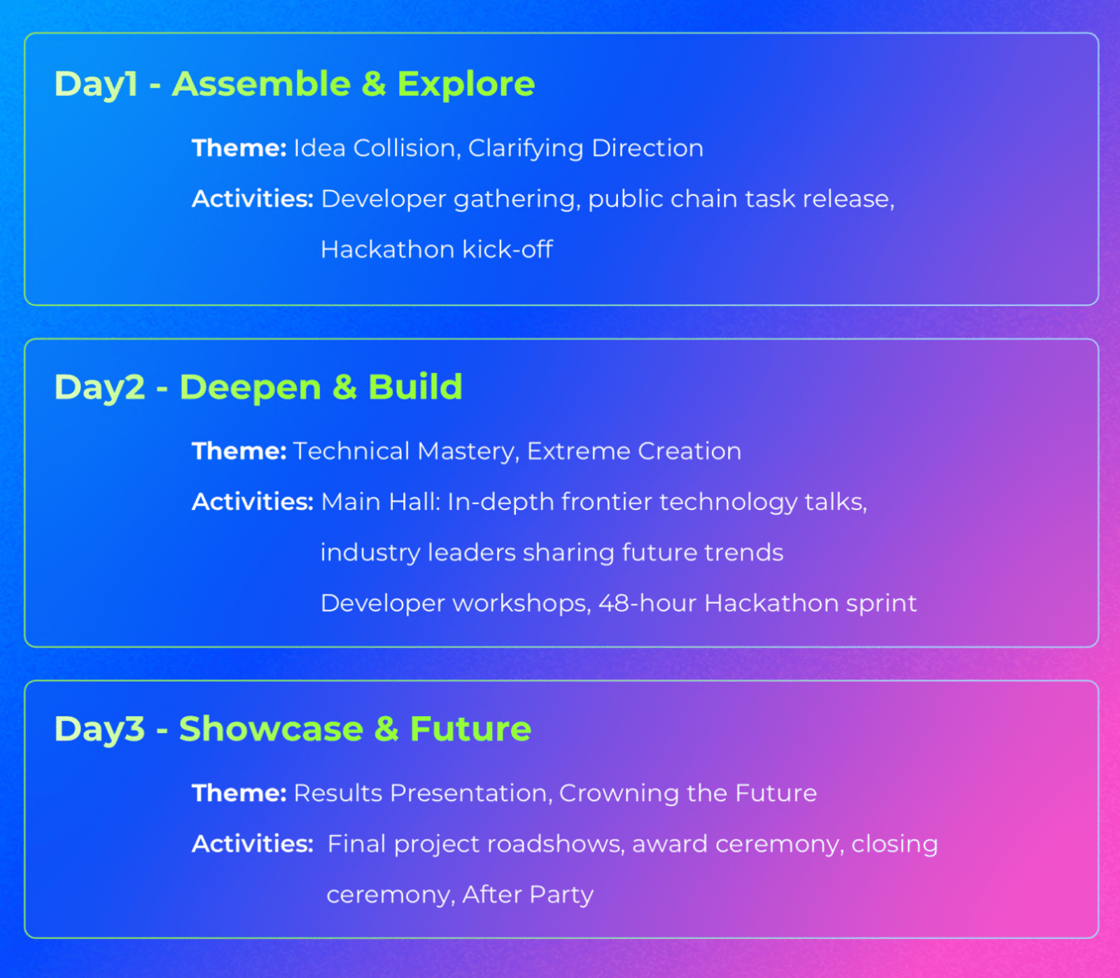 頂級黑客松:300+開發者、50+項目,總獎池10萬+ USD(各賽道最高1萬U現金 + 12萬USD雲服務額度),公鏈任務 + Mentor指導 + VC評審。
