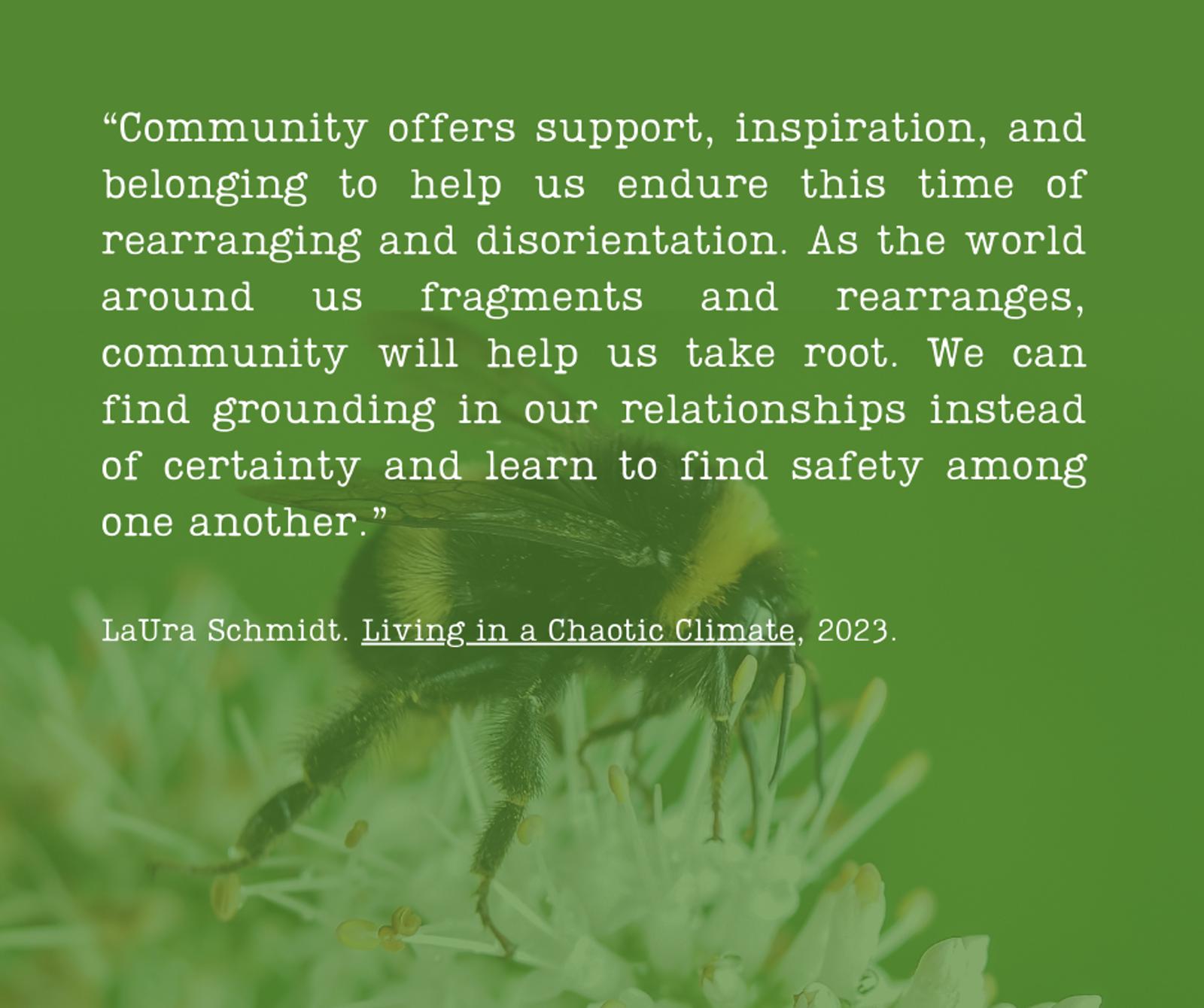 Here's an excerpt about the importance of bringing together "community" from LaUra Schmidt: