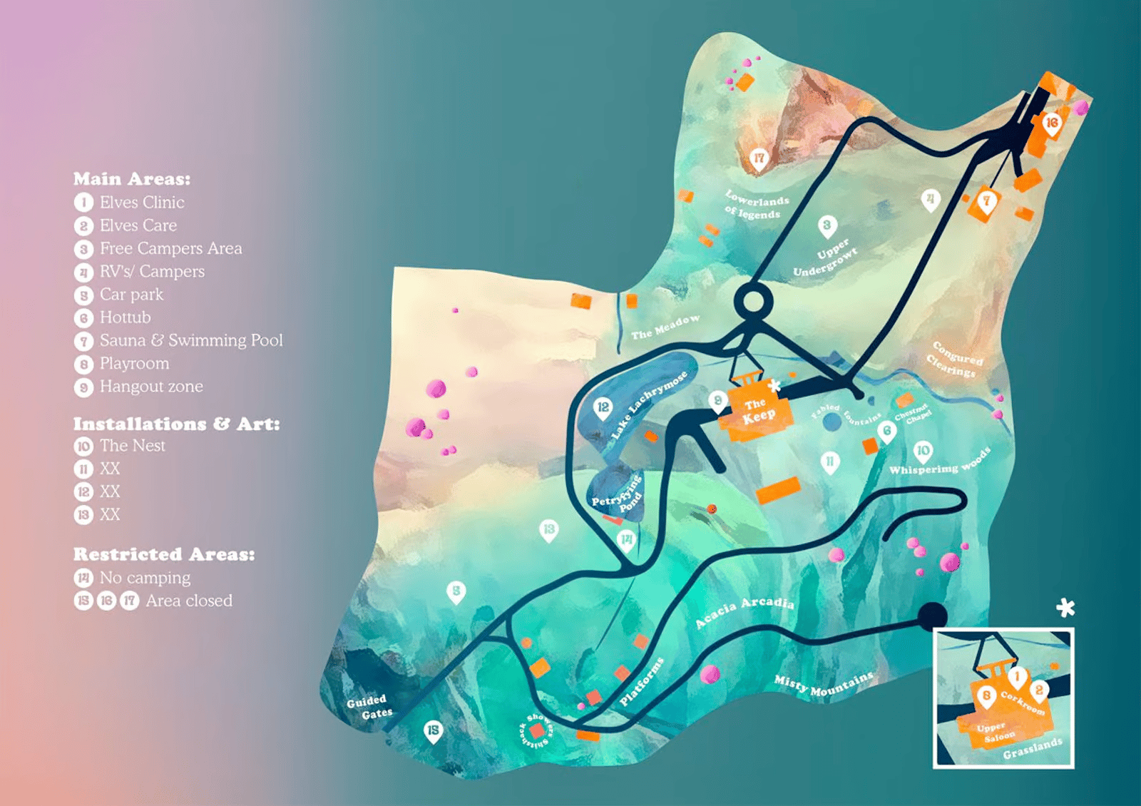 ⚖ Accommodation [rooms, cabins, glamping] offered separately [July release] or bring your own for free.