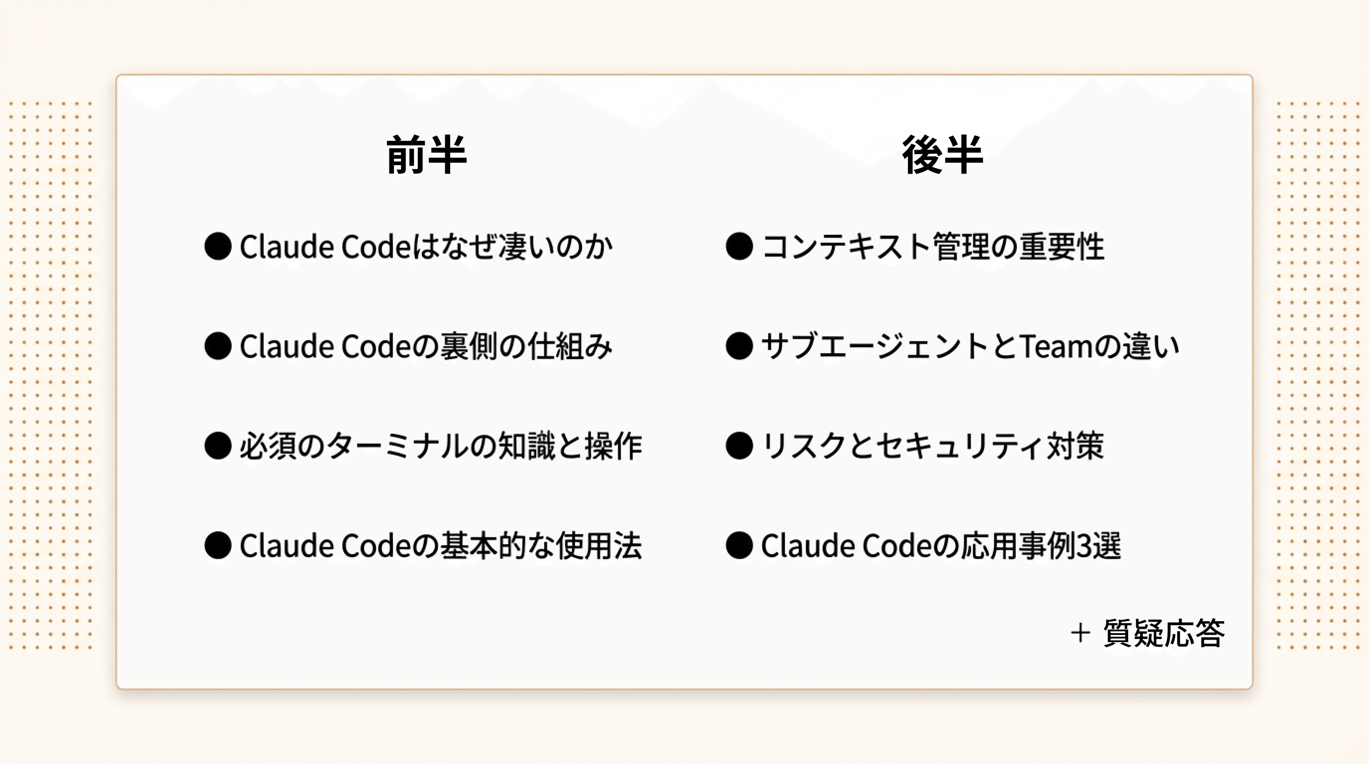 ※ 内容は Claude Code のアップデート状況に応じて、一部調整する可能性があります。